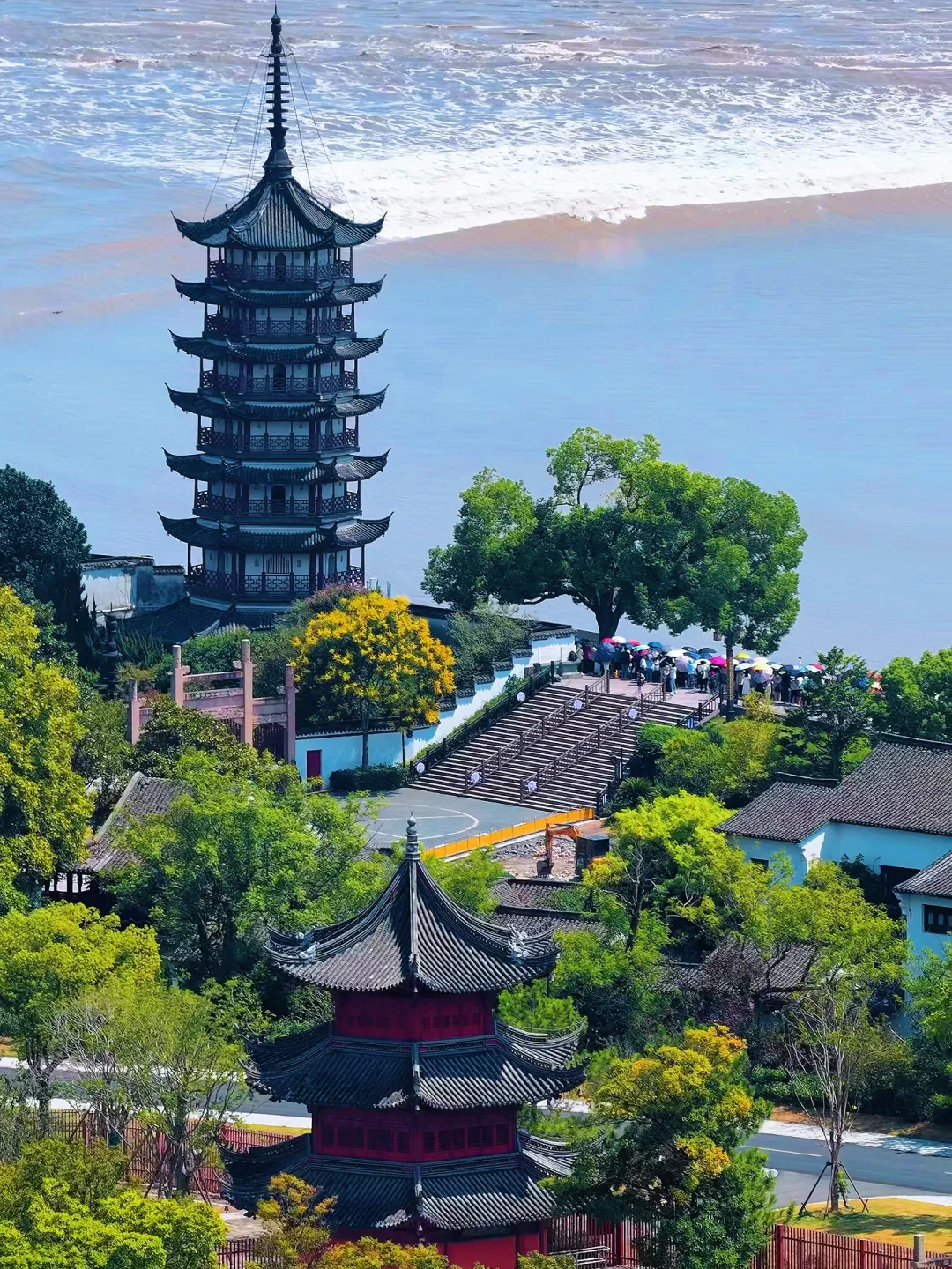Day1: 盐官潮乐之城➠盐官潮墙➠御码头➠观潮胜地公园➠占鳌塔➠孔庙学宫➠拱辰门➠裕丰酱园
