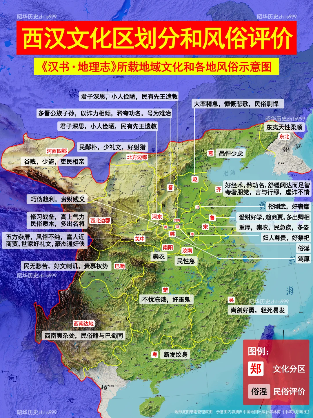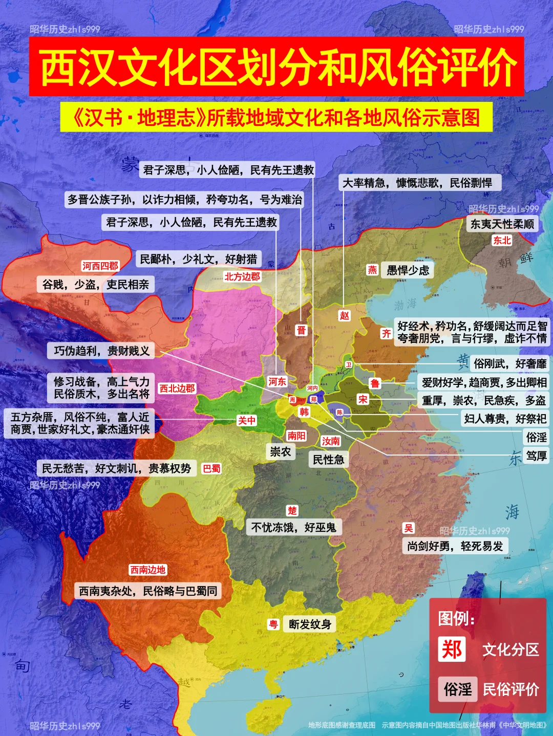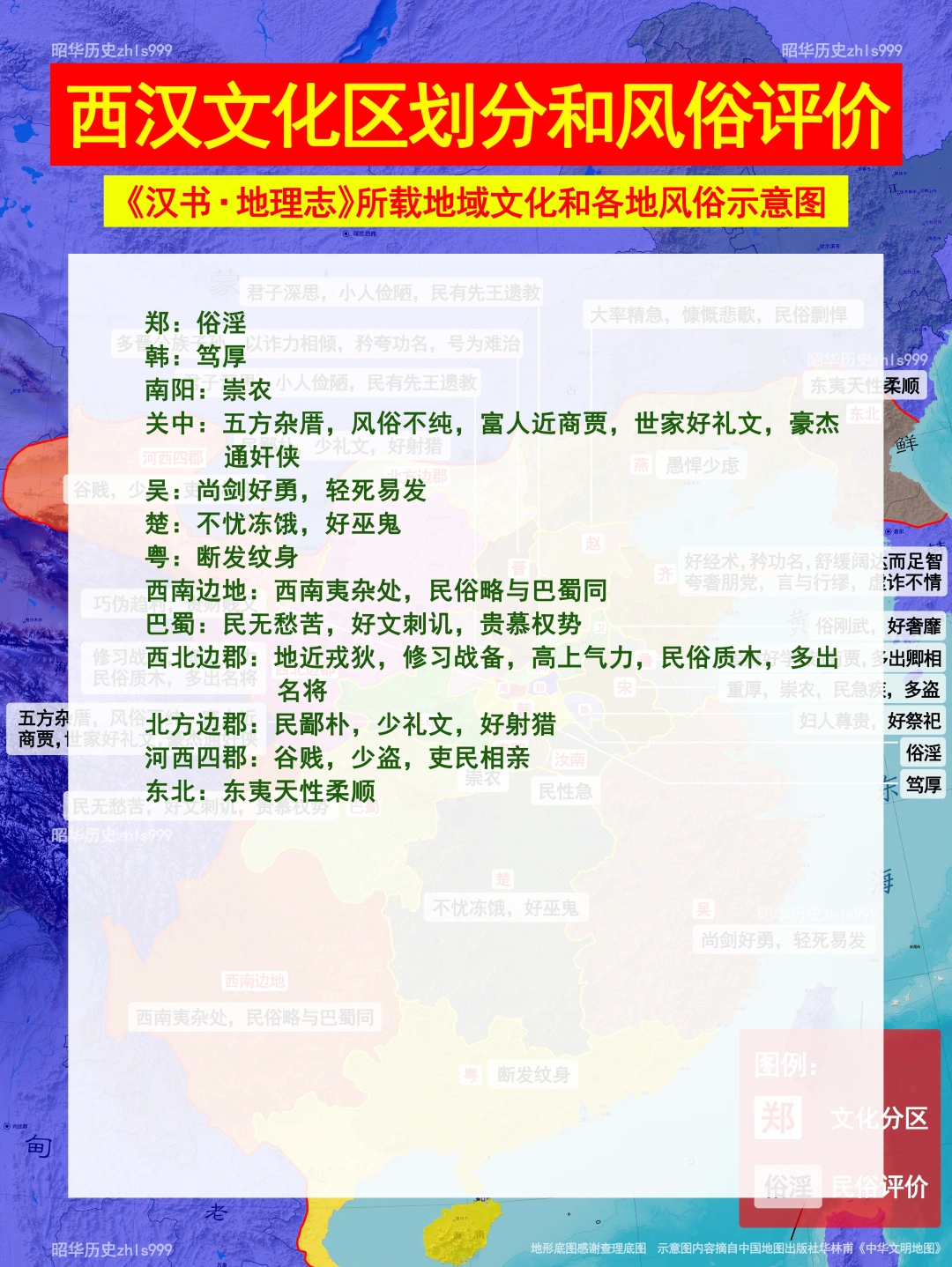 书中对于各地西汉时的风俗评价为: