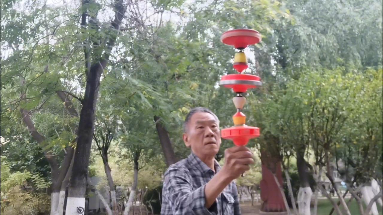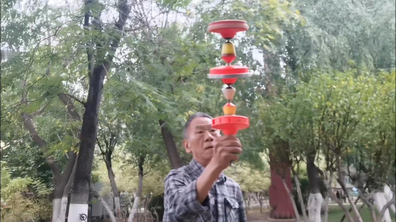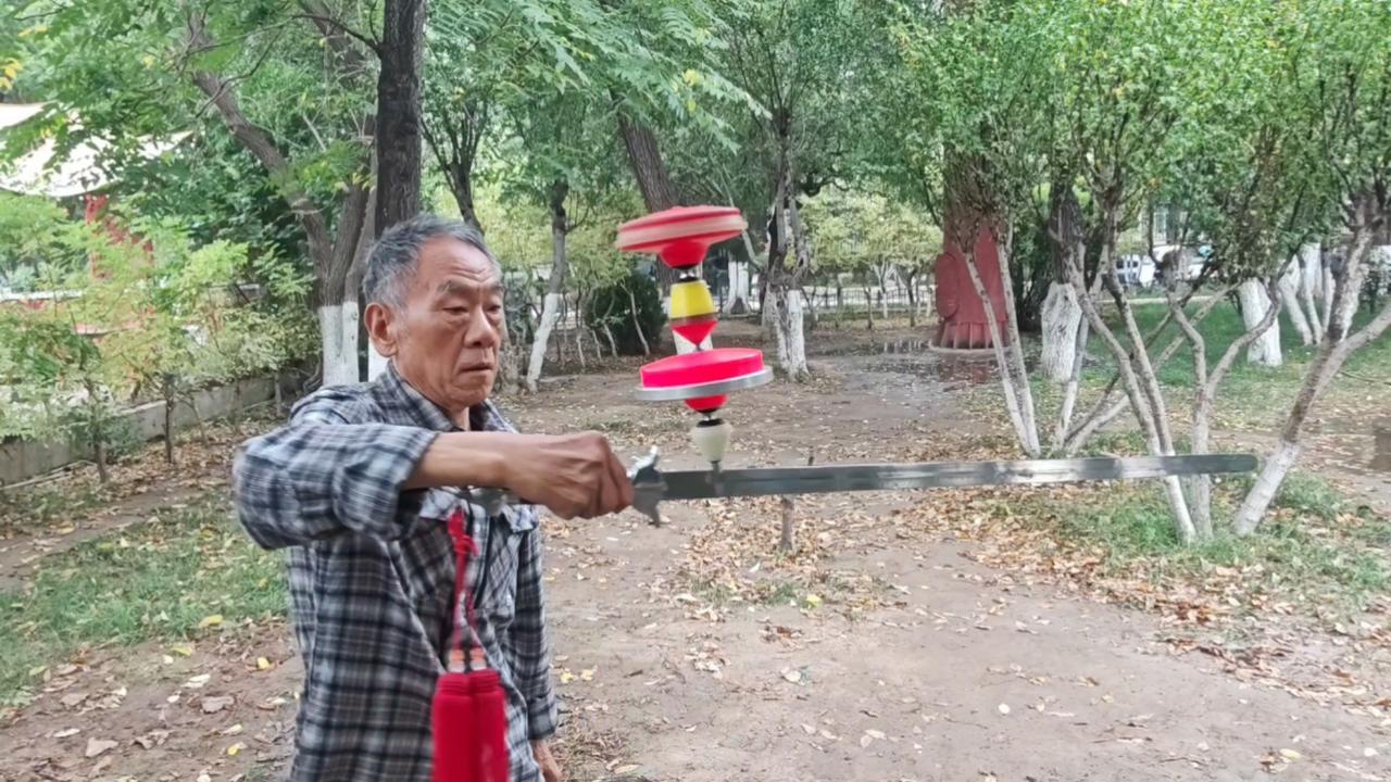 开心快乐玩耍剑尖剑刃旋转空竹!