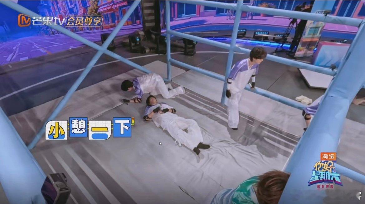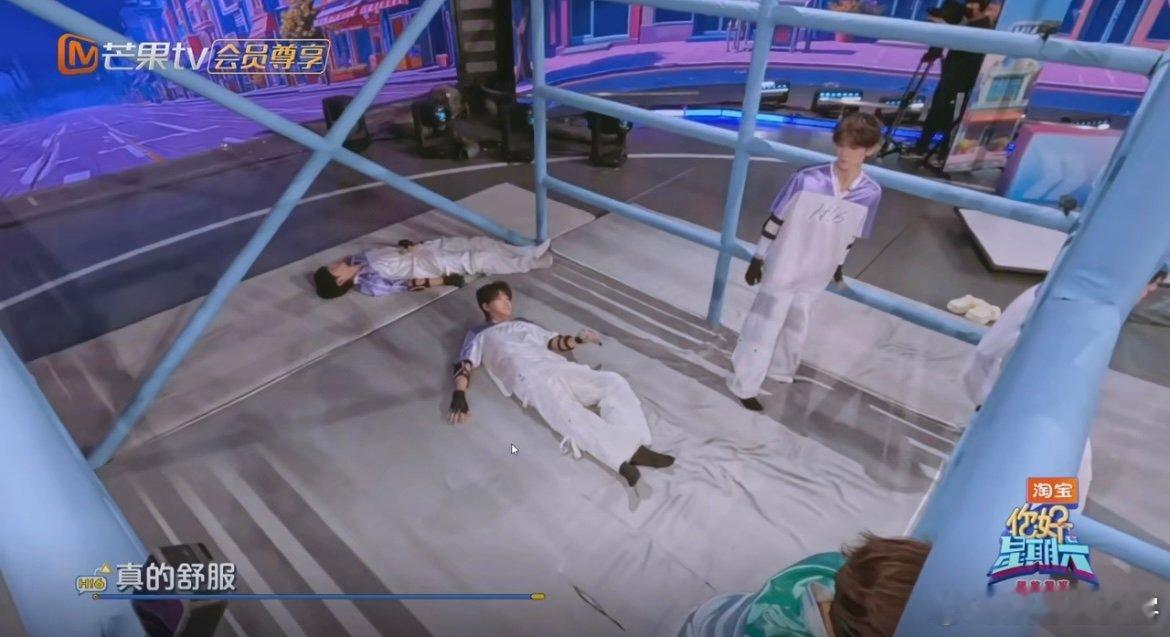 朱志鑫张极玩游戏先睡一觉 游戏规则还没听完,俩少年瞅见垫子就挪不动道,一躺一蜷秒入睡,软乎乎的样子像揣了俩小团子!你好星期六 ​​​