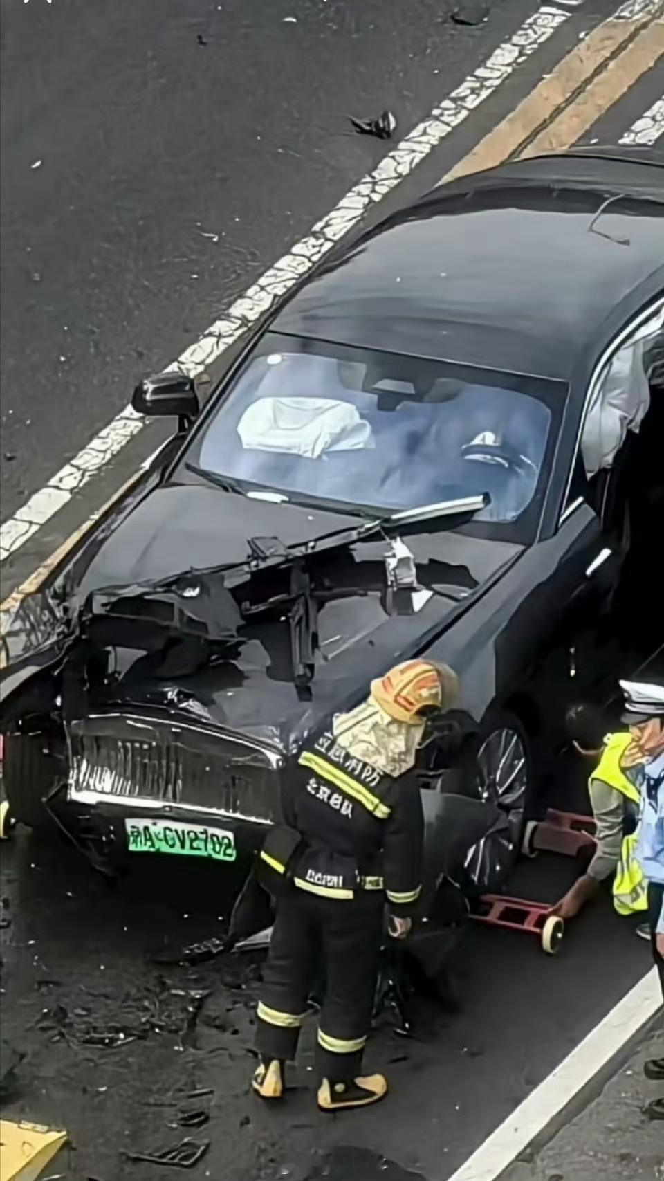 知名车圈网红陈震的劳斯莱斯闪灵撞了!!看现场交通事故照片,这是直接逆行呀,全责没