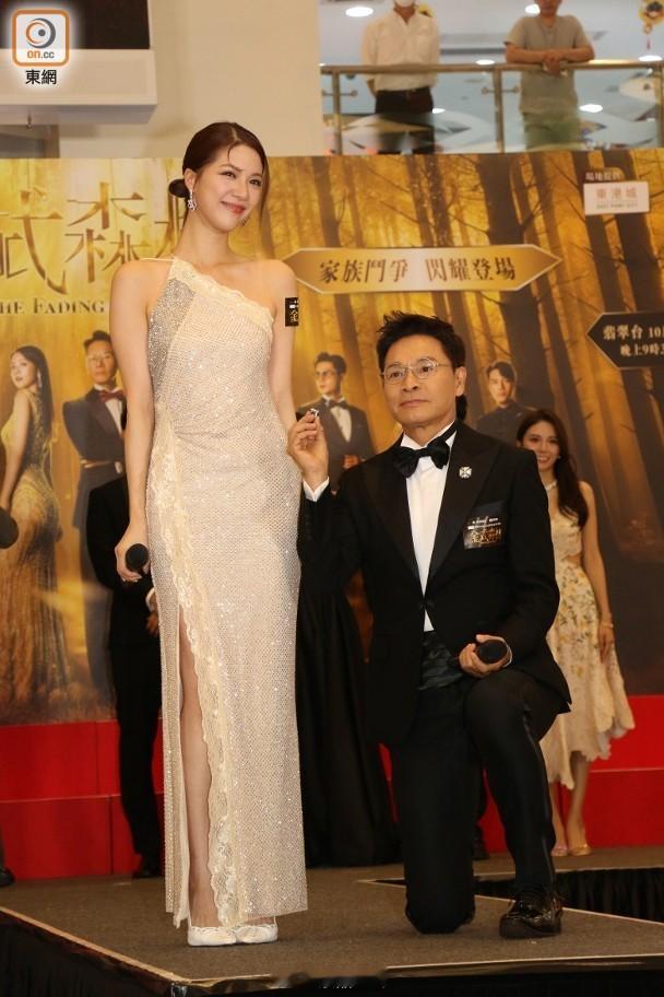郭晉安和陳曉華台上重演跪地求婚一幕。