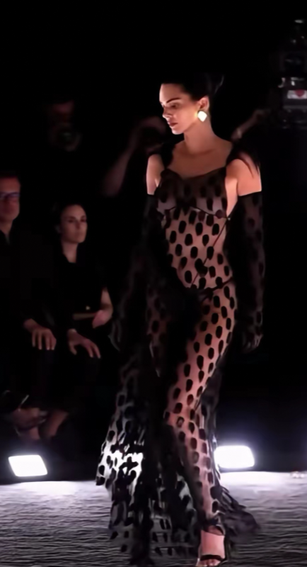 卡戴珊家族的四妹肯豆果然不同凡响。她以一袭黑色波点透视长裙为Schiaparelli 2025春夏高定秀压轴,薄纱裙身搭配夸张羽毛裙摆,辅以巨型金色耳饰,造型惊艳全场。 作为本季时装周的“秀霸”,她行程满档却台步稳健、气场全开,将品牌的怪诞奢华风演绎得淋漓尽致,再次证明了自己在时尚圈的硬实力。
