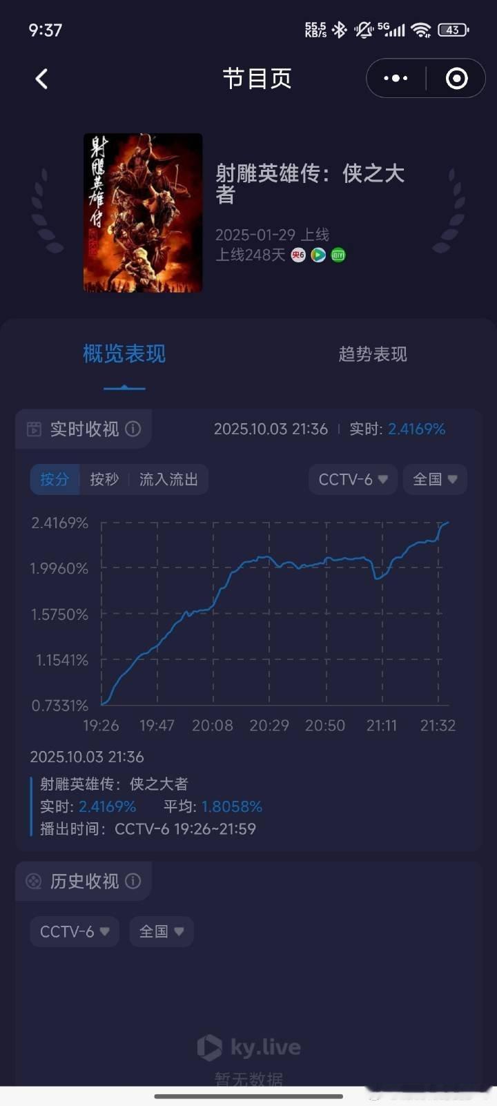肖战版射雕收视登顶肖战的射雕太牛啦!酷云收视破2.4,欢网破3.2,登顶全平台第