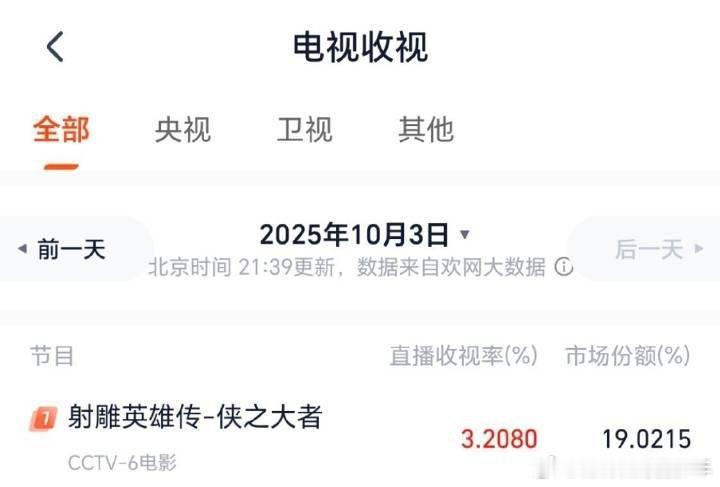 肖战版射雕收视登顶肖战的射雕太牛啦!酷云收视破2.4,欢网破3.2,登顶全平台第一!![爱慕][爱慕][爱慕]这是这么优秀!