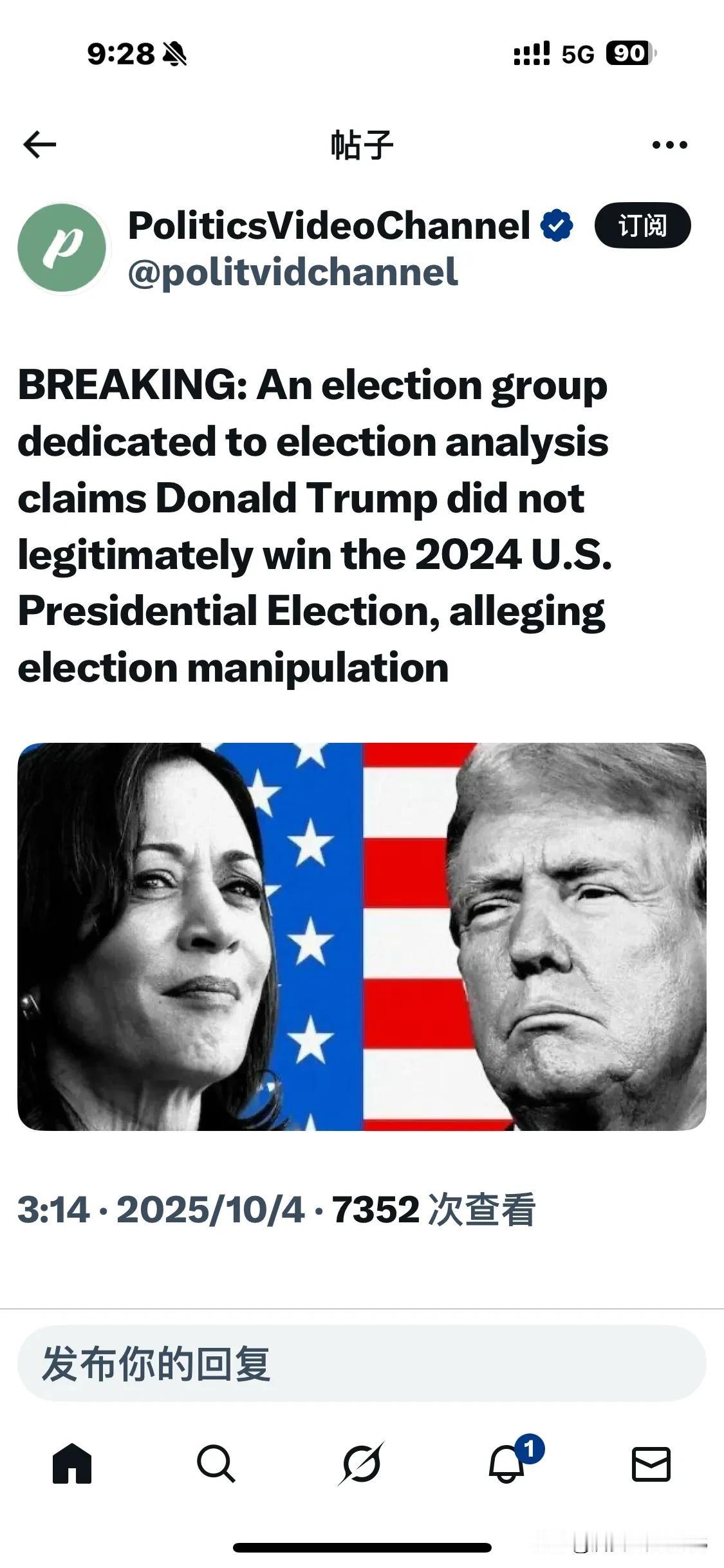 突发新闻:一个致力于选举分析的选举组织声称唐纳德·特朗普没有合法赢得2024