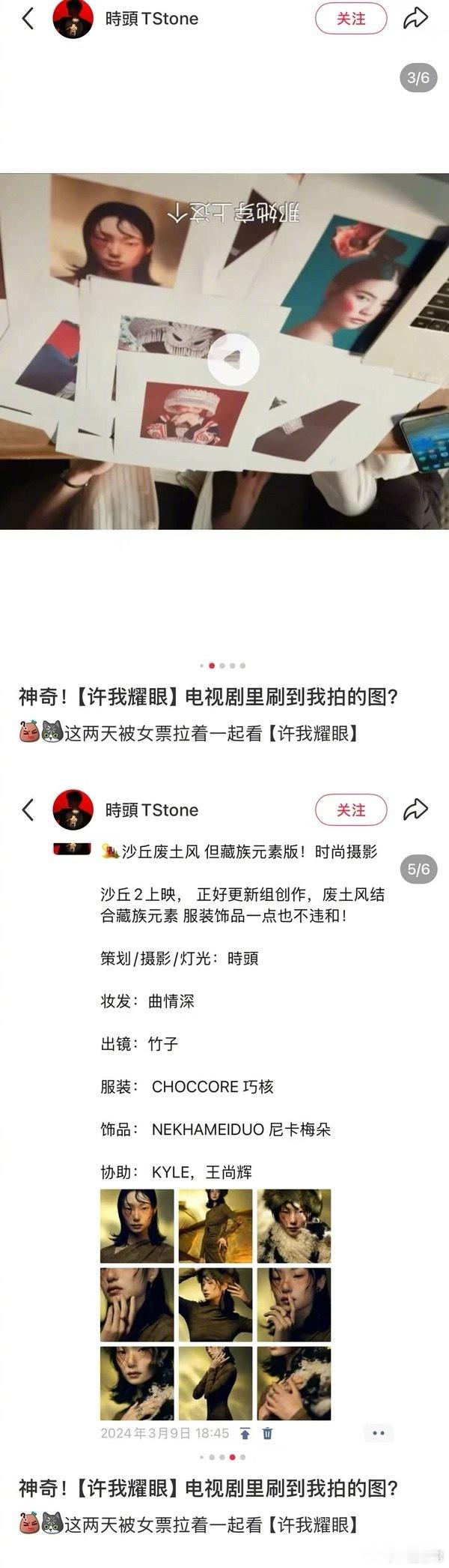 多位博主称被《许我耀眼》剧组盗图