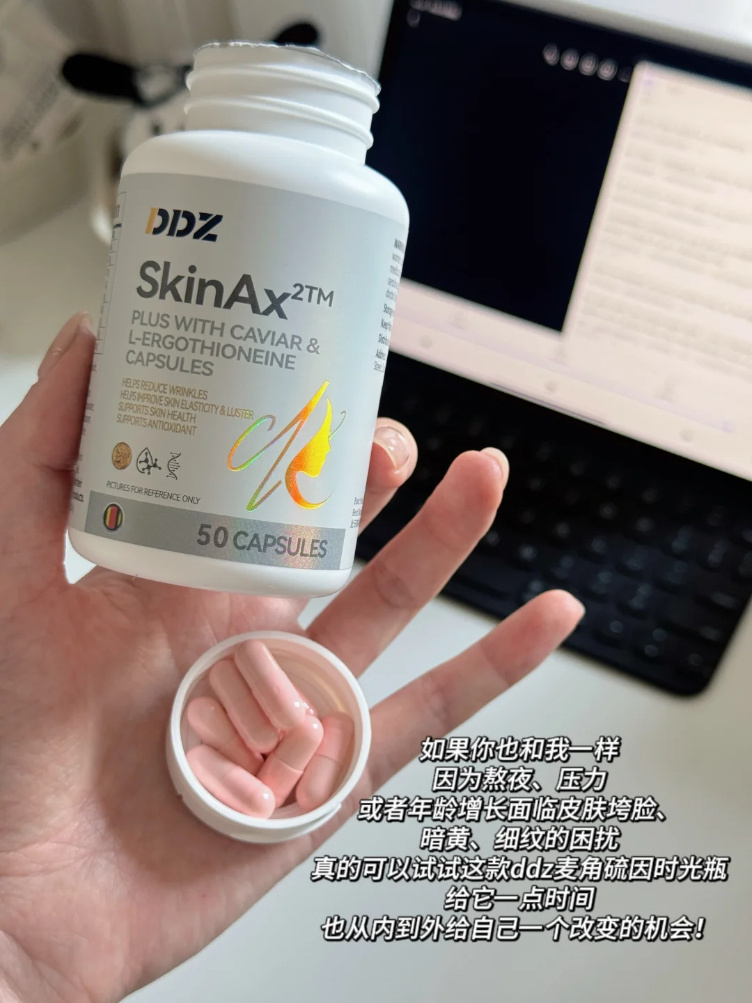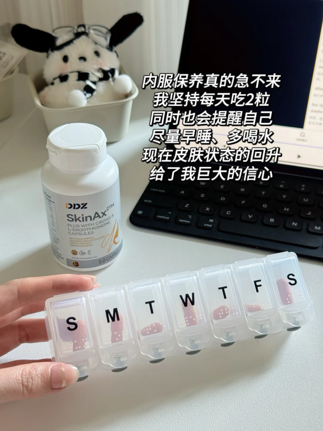 还有还有,我想跟大家说:内服保养真的急不来,我坚持每天吃2粒,同时也会提醒自己尽量早睡、多喝水。现在皮肤状态的回升给了我巨大的信心!如果你也和我一样,因为熬夜、压力或者年龄增长面临皮肤垮脸、暗黄、细纹的困扰,真的可以试试这款ddz麦角硫因时光瓶,给它一点时间,也从内到外给自己一个改变的机会!