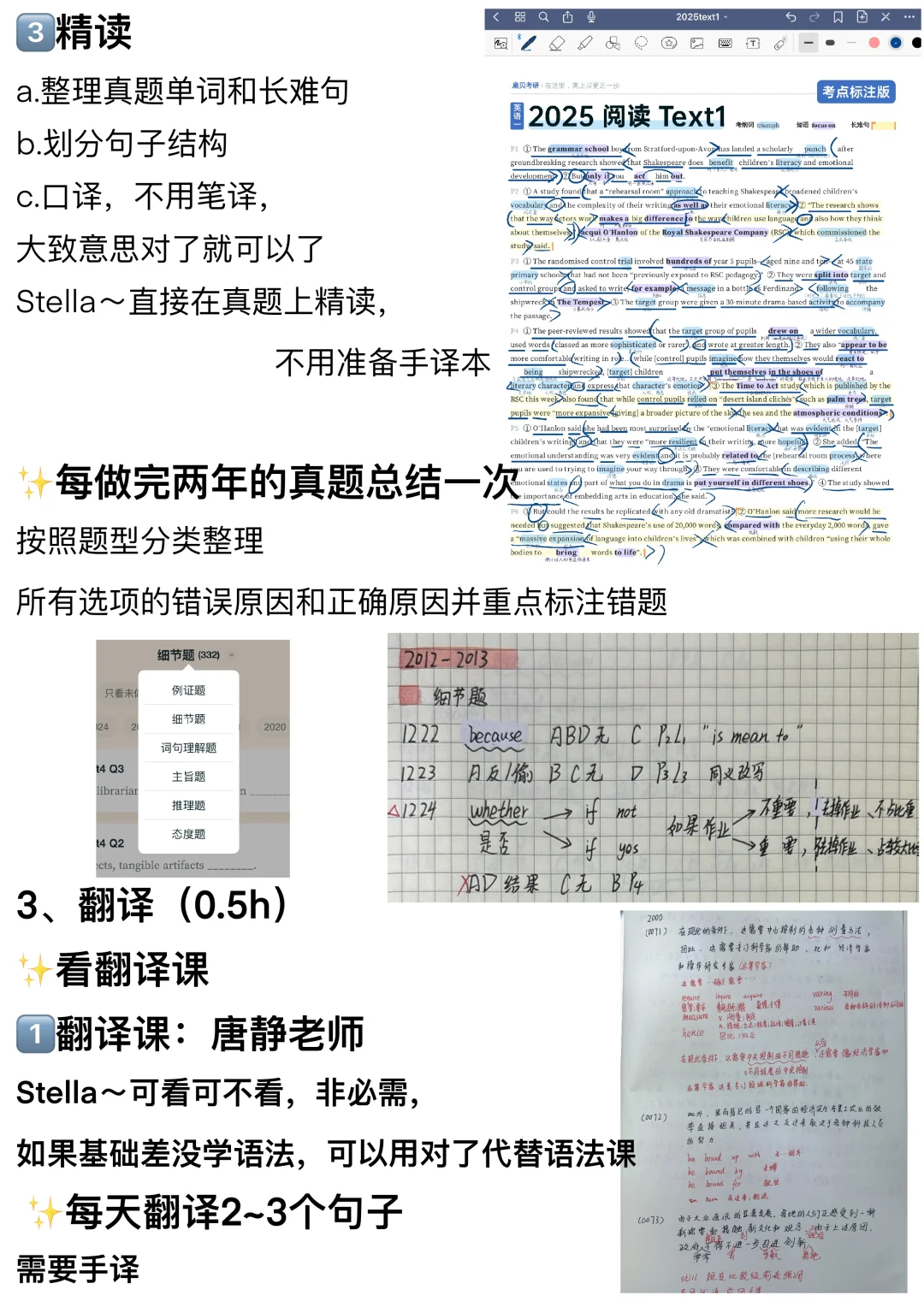 方案二:✨不看翻译课的,每天翻译2~3个句子→至少刷24套真题的翻译部分