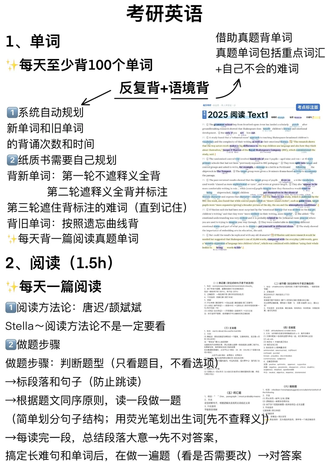 ✨(背完一轮单词后开始)每天一篇阅读→暑假至少做七年的真题(从八月开始做题)
