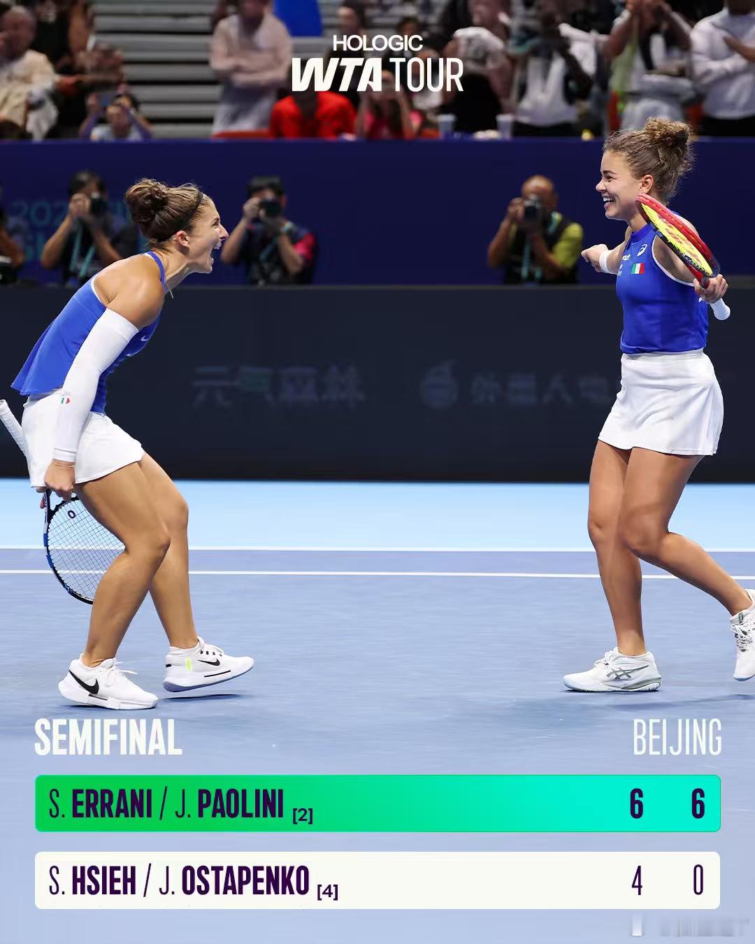 恭喜埃拉尼/保利尼组合晋级2025中网女双决赛,距离卫冕还差一场胜利。保利尼穿
