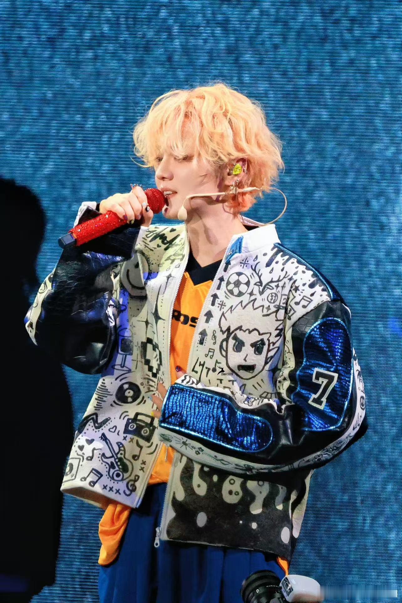 鹿晗定制手绘痛衣鹿晗金色小卷毛 鹿晗演唱会开场造型细节感绝了!金色小卷毛一出来就超吸睛,再看那件手绘外套——全是他自己画的小心思,自画像、足球、音符还藏着爱好,妥妥的 “定制痛衣” 即视感,这么好玩儿的特别定制也是第一次见,好有sense!