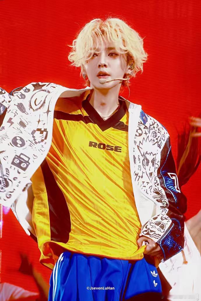 鹿晗定制手绘痛衣鹿晗金色小卷毛鹿晗演唱会开场造型细节感绝了!金色小卷毛一出来就