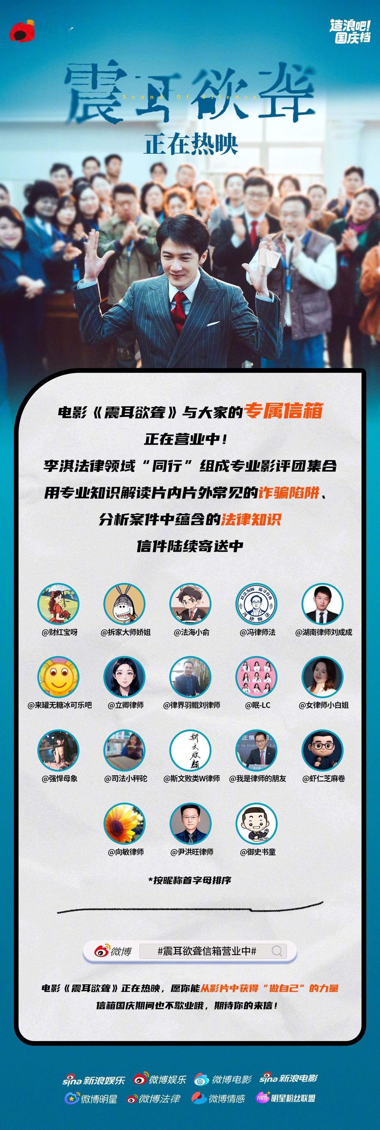 电影《震耳欲聋》上映中,灰度律师李淇为自己、为正义发声的故事是否打动到你?影片与大家的专属信箱今日开始营业📮即日起至10月19日,带话题震耳欲聋信箱营业中 发博并艾特或任意主创微博,分享影评或生活感悟,官微与主创将不定期翻牌“回信”,还有机会获得影片周边奖励!电影震耳欲聋造浪吧国庆档