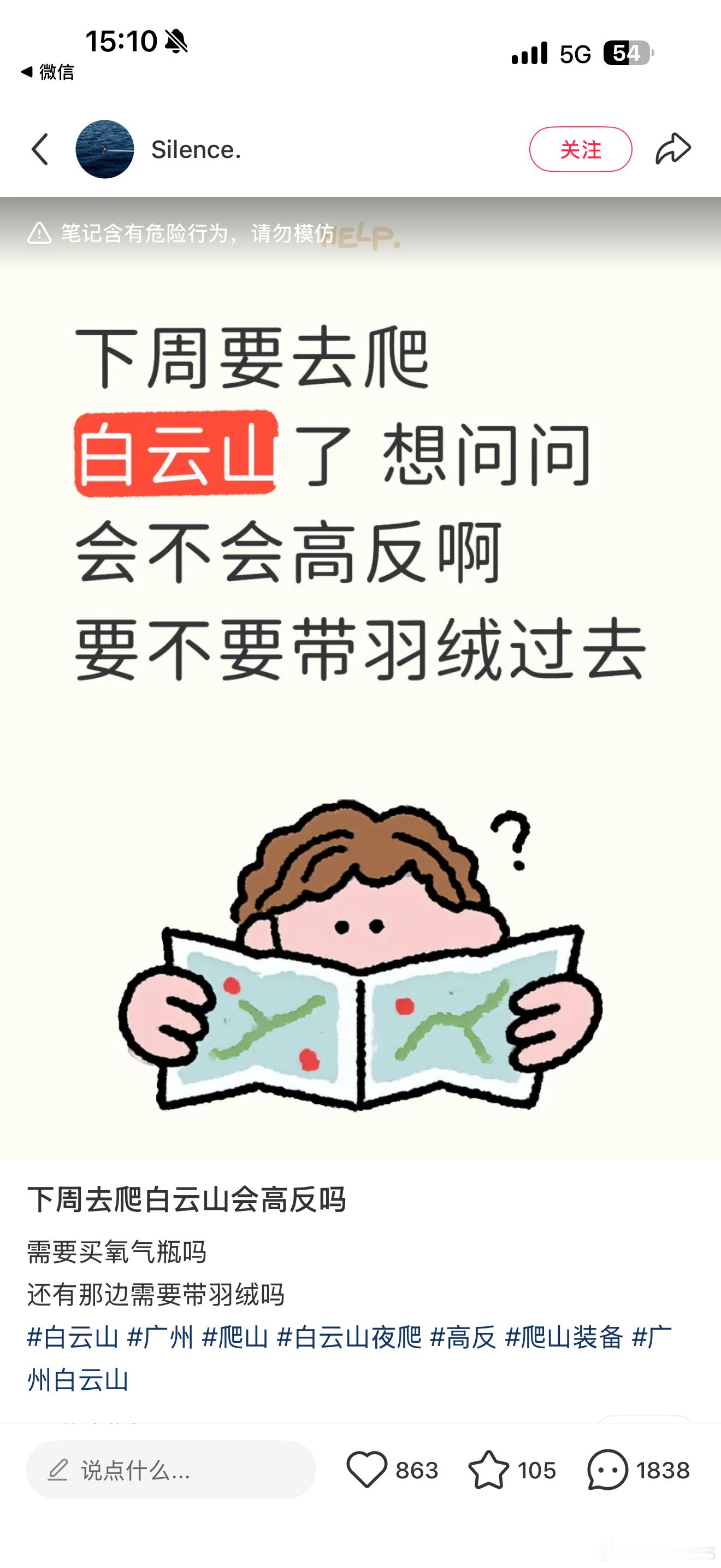左上角的提示,正!广州着羽绒爬山,绝对是危险行为,会热死! ​​​