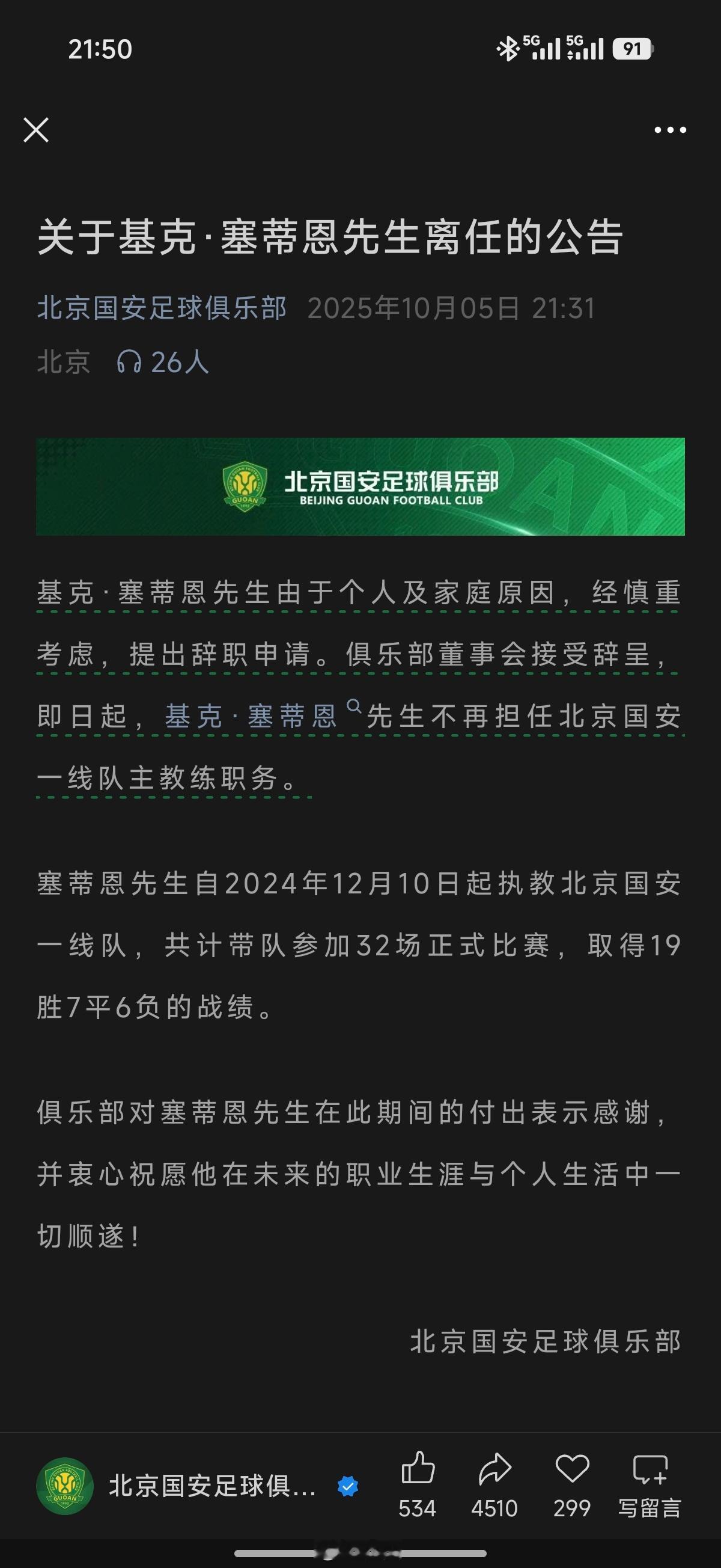 塞蒂恩下课 北京国安最近糟糕的成绩,还是把塞蒂恩交代了!32场19胜7平6负的战绩,我觉得很可以的,说得过去吧。个人和家庭原因也算是双方体面分手的理由,也没有否定其的成绩!但是,国安总爱换主教练,技战术不稳定,名帅、大牌球员什么时候缺席过?