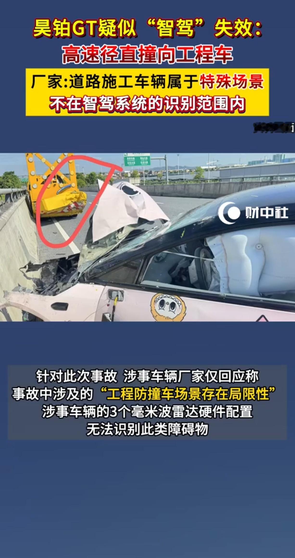 官方也回应了:事故车辆的 3 个毫米波雷达存在识别局限——道路施工车辆这类特殊场景不在系统识别范围内。
