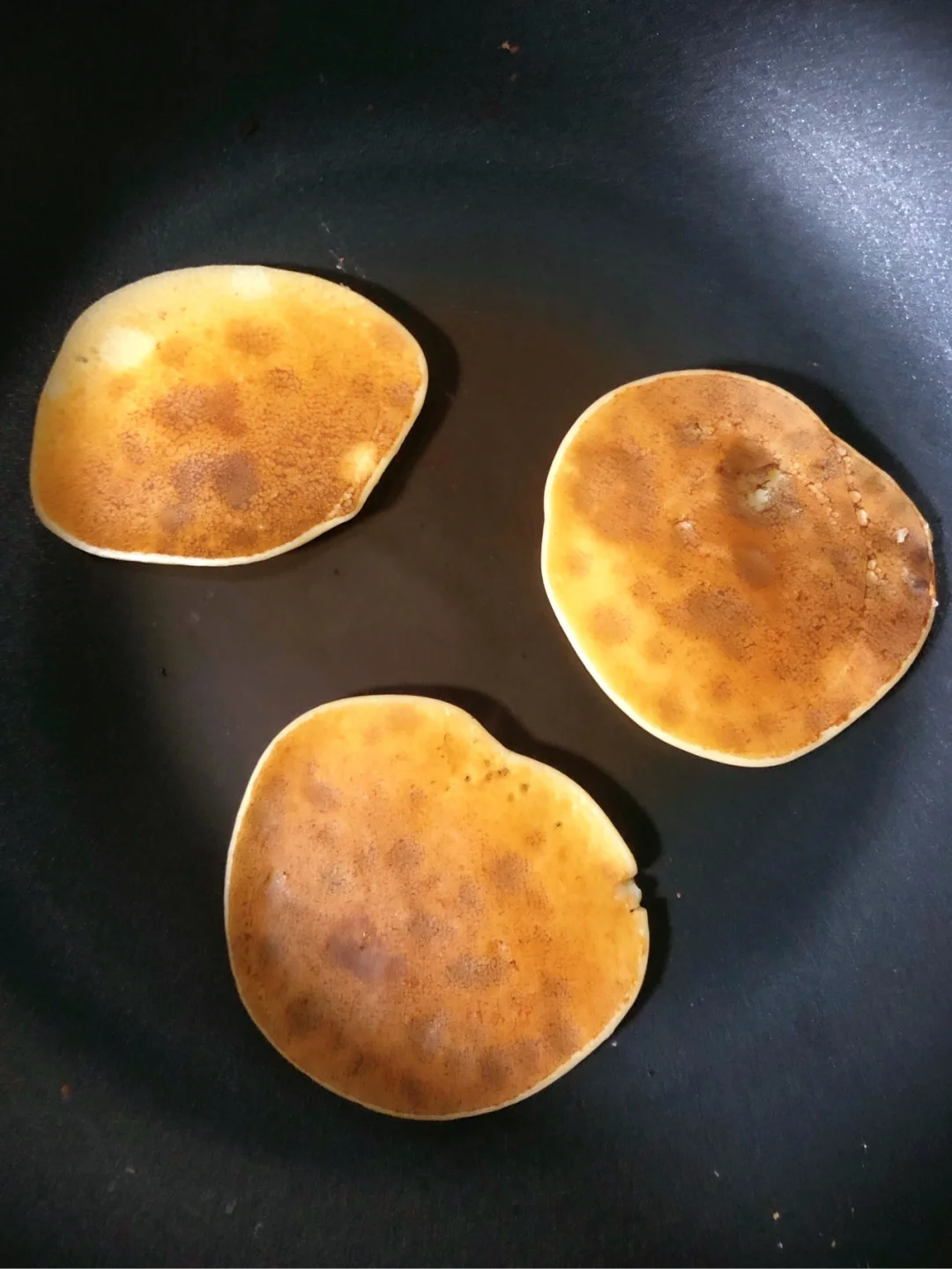神仙做法!! 好神奇又好吃!! 1⃣️100g面粉、2个鸡蛋、150g酸奶、30g白糖,倒进塑料瓶,摇晃均匀 2⃣️锅里倒入面糊,小火慢慢加热,成型之后翻面,再煎一下就好 完成✅ 简单方便做松饼🥞 再加点蜂蜜和水果更绝