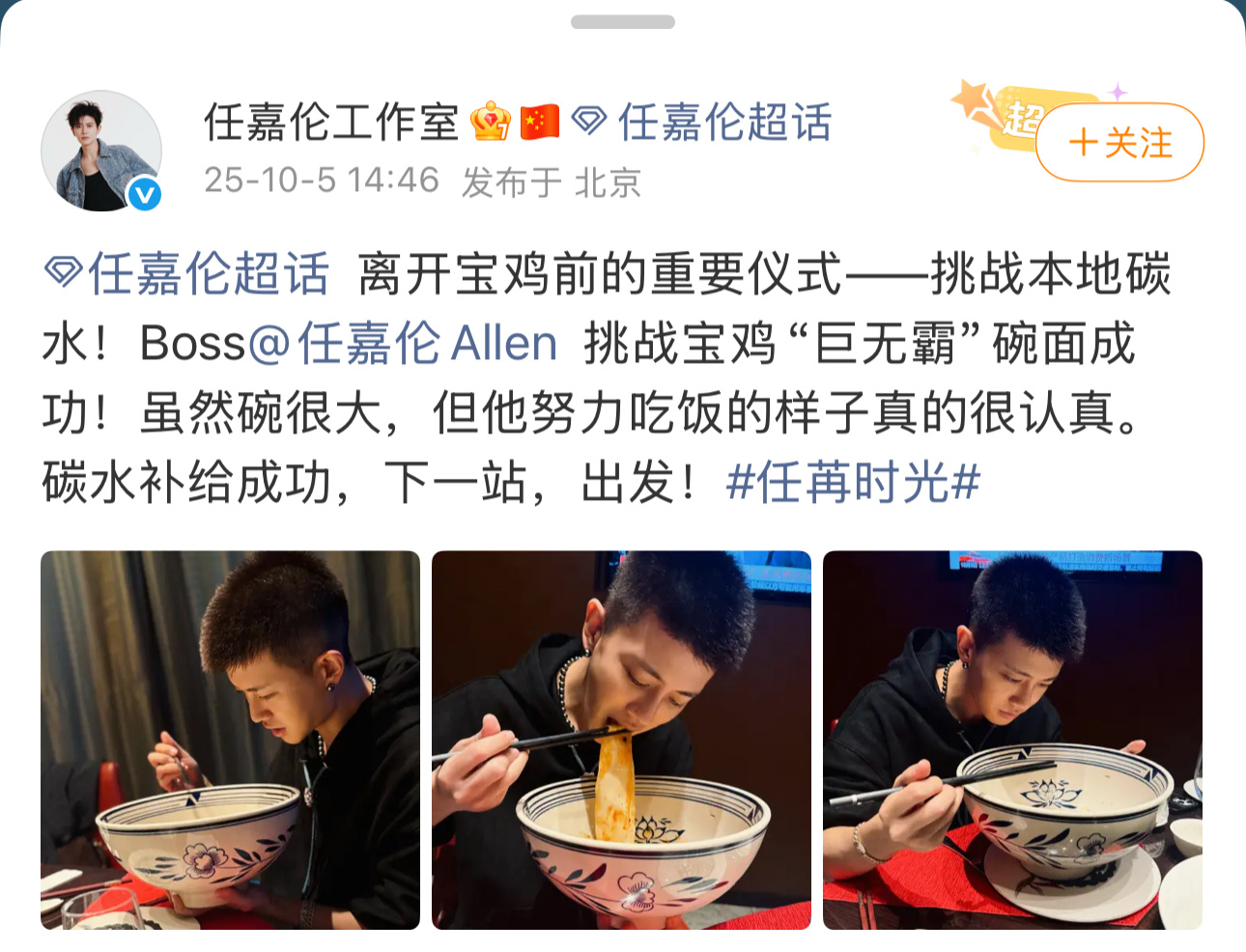 任嘉伦用这么大个碗吃饭,碗里应该只有一根面![笑cry]