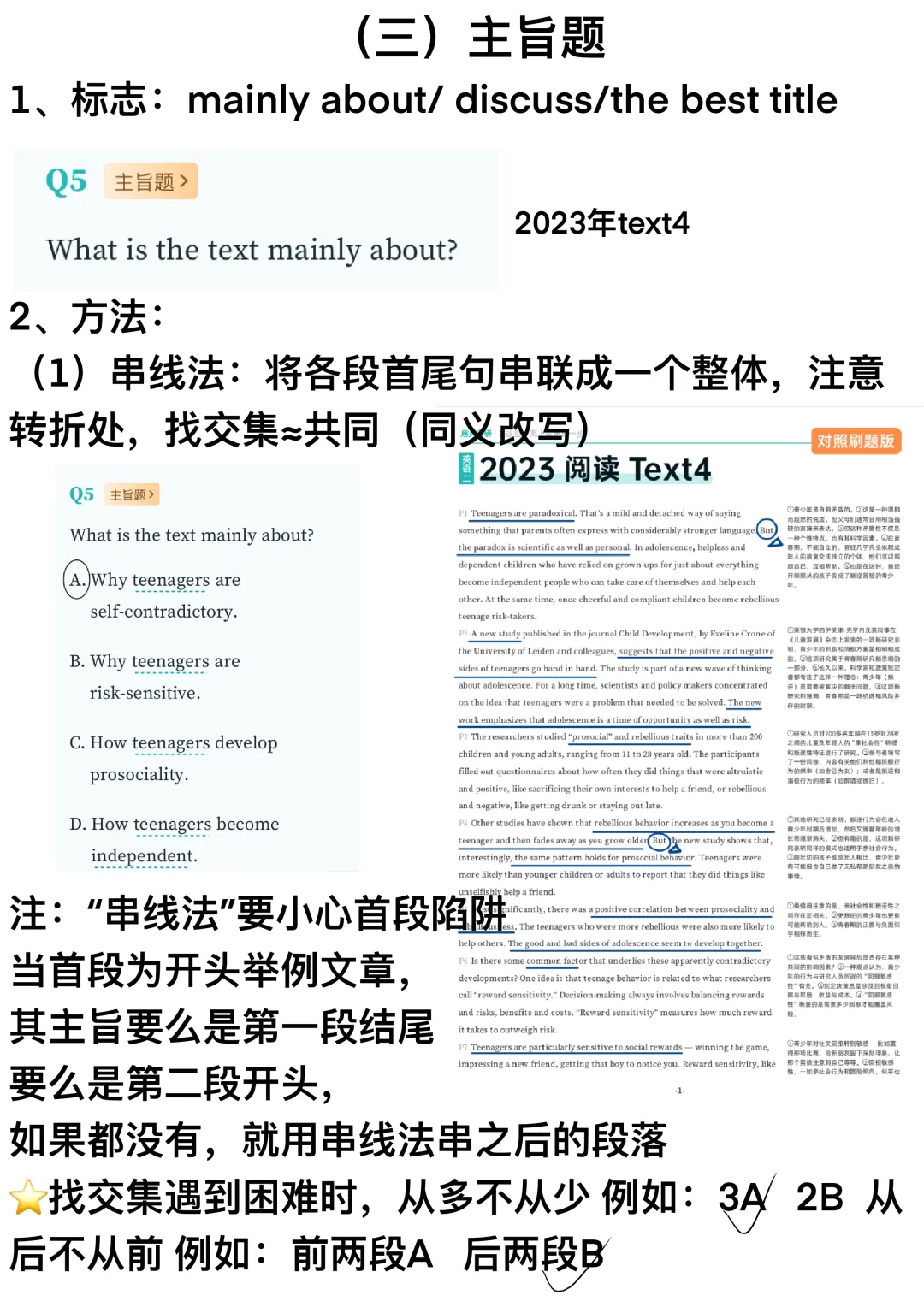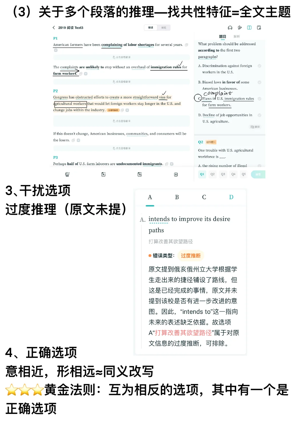 3️⃣关于多个段落的推理—找共性特征=全文主题