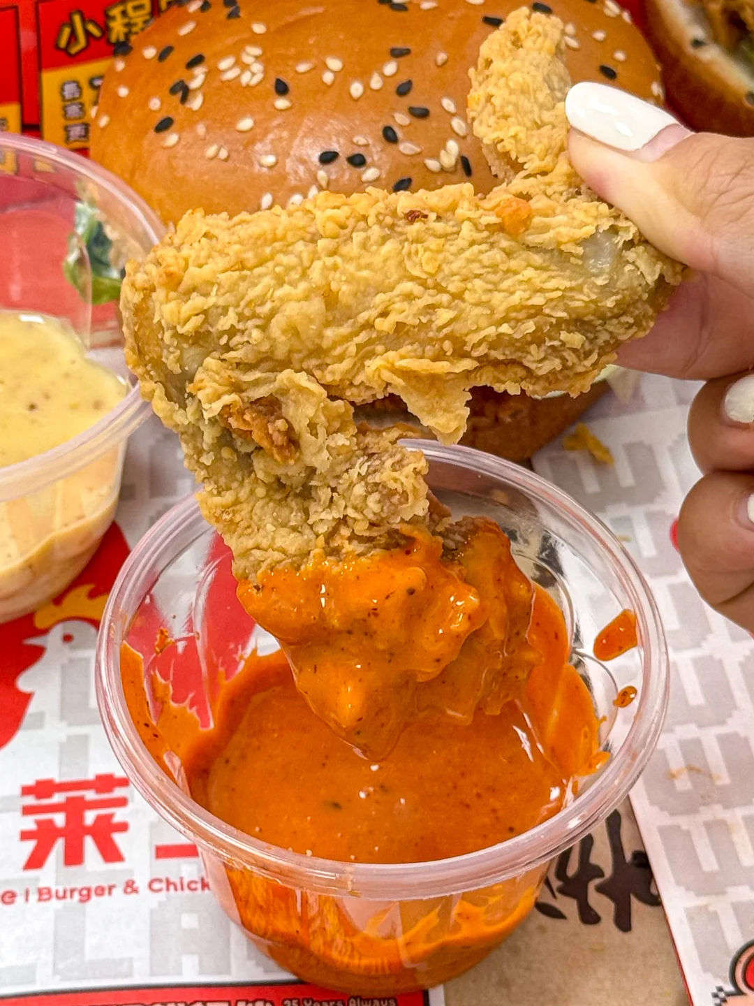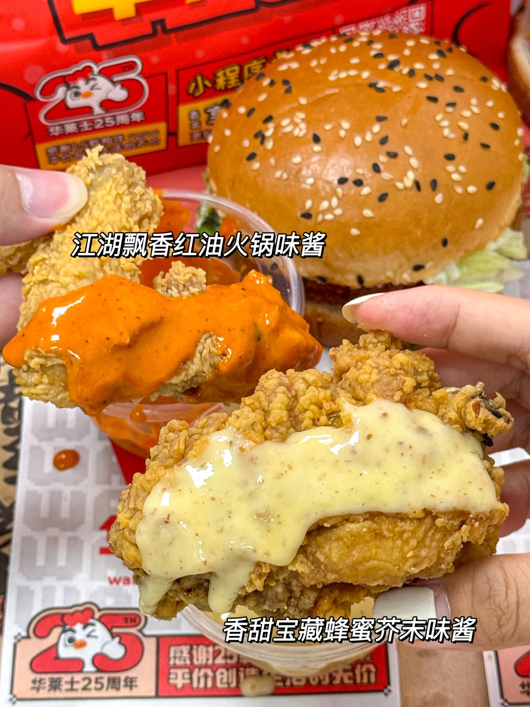 还可以选择搭配蜂蜜芥末酱或者红油火锅蘸酱!个人超爱这个红油酱 香辣浓郁好特别~满足又过瘾!