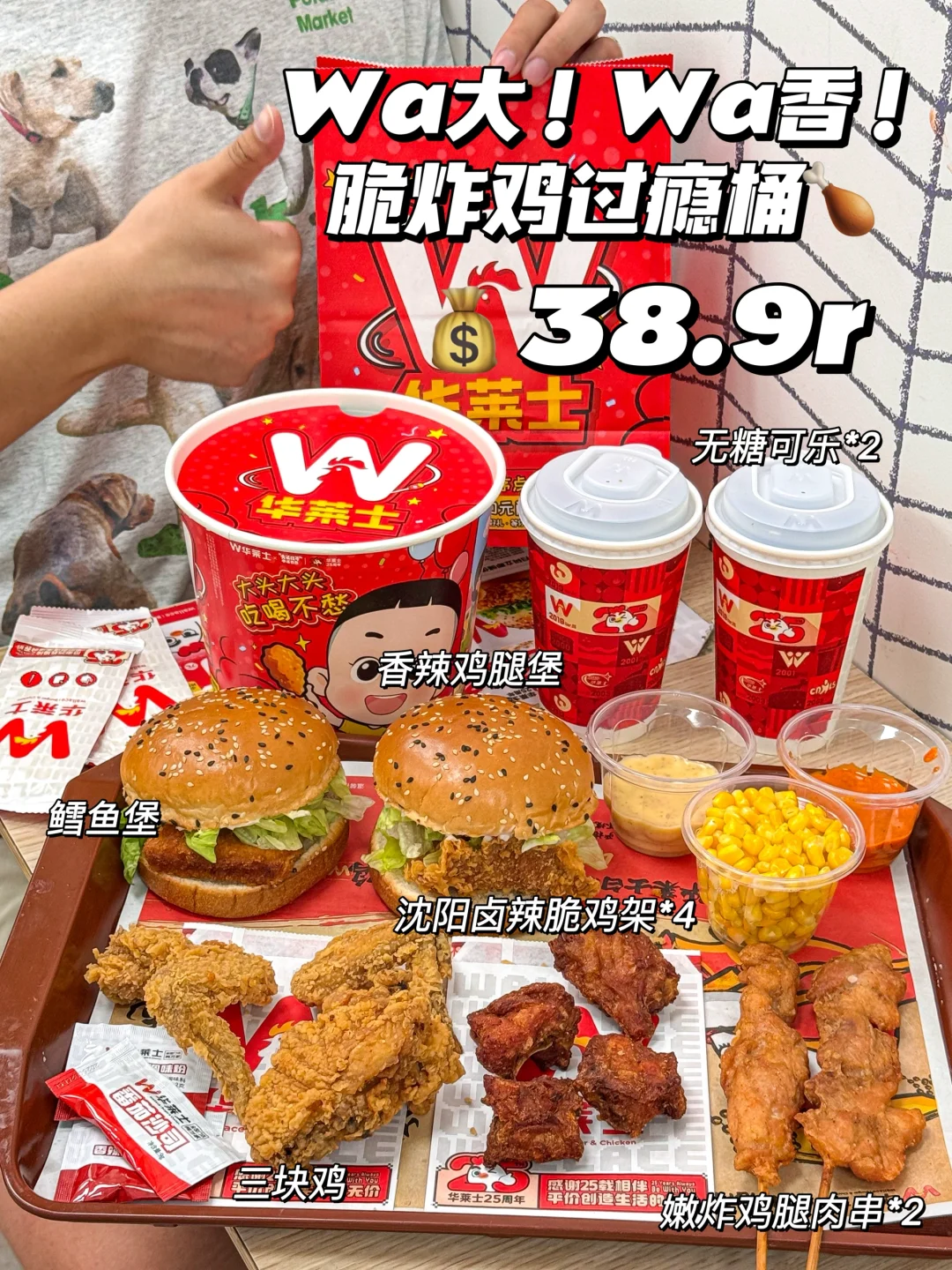 好一波国庆大招!!38.9元超满足!Wa大!Wa香!脆炸鸡过瘾桶套装:汉堡🍔+脆炸鸡🍗+炸鸡架+烤串🍢…啥都有!!炸鸡脑袋直接馋迷糊了…一整个大吃特吃!