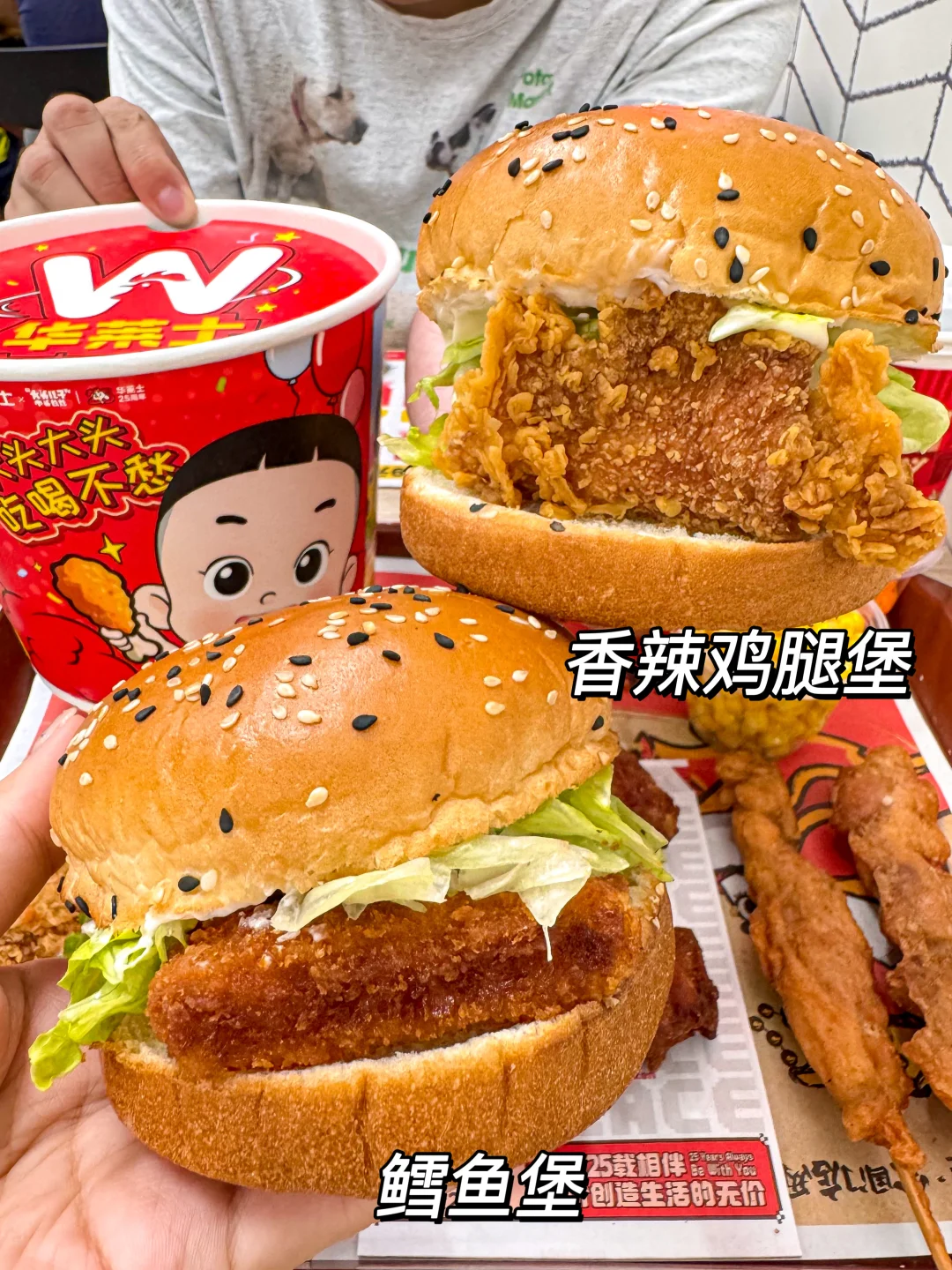 香辣鸡腿堡/鳕鱼堡/牛堡/阳光果蔬堡,四款汉堡任选两款都是经典味道~配上两杯无糖可乐真的是分量惊人,两个人根本吃不完!
