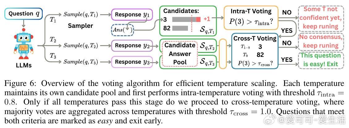 - 设计了多温度投票机制,实现对简单问题的早期退出,降低多温度带来的计算开销。