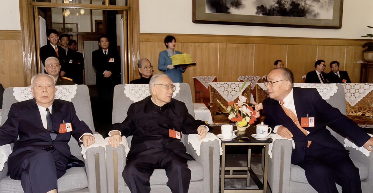 1997年党的十五大开幕前,休息室里三位党内元老。左边是万里,担任过全国人大委员长,中间是薄一波,担任了10年中顾委第一副主任。右边是杨尚昆,担任过国家主席。万里身后是刘华清上将,是十四届政治局常委,正国级领导人。薄一波后面是宋平,也曾是政治局常委,正国级领导人。