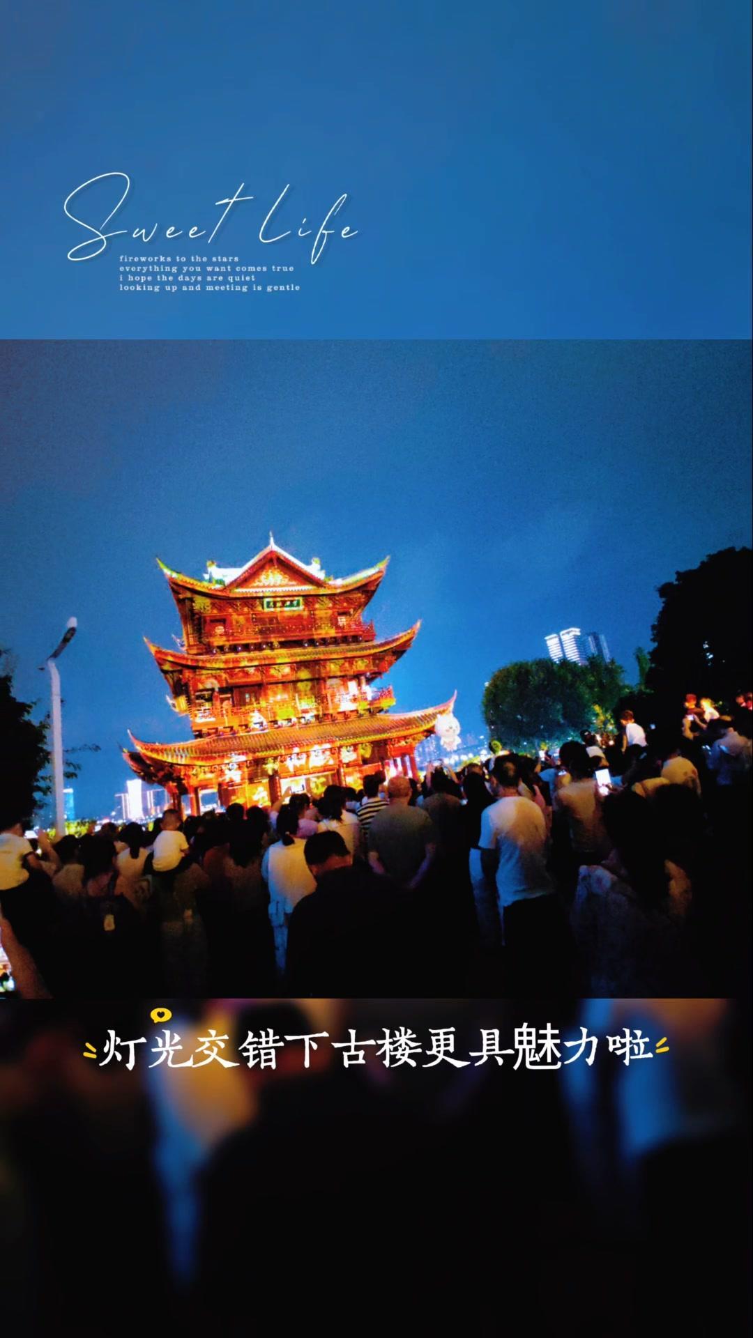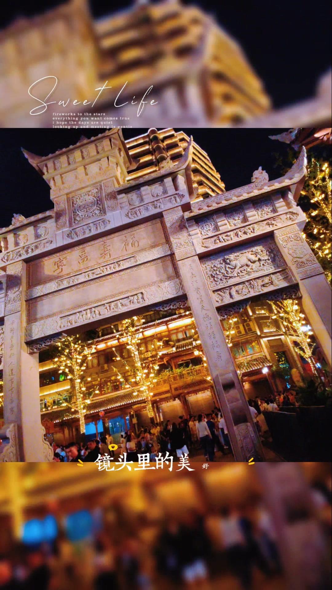 被人群簇拥走向亮灯古楼,街道两旁灯光像繁星落人间。经过精美的石牌坊,感受着周围的