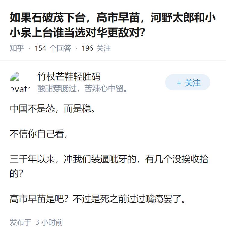 如果石破茂下台,高市早苗,河野太郎和小小泉上台谁当选对华更敌对?