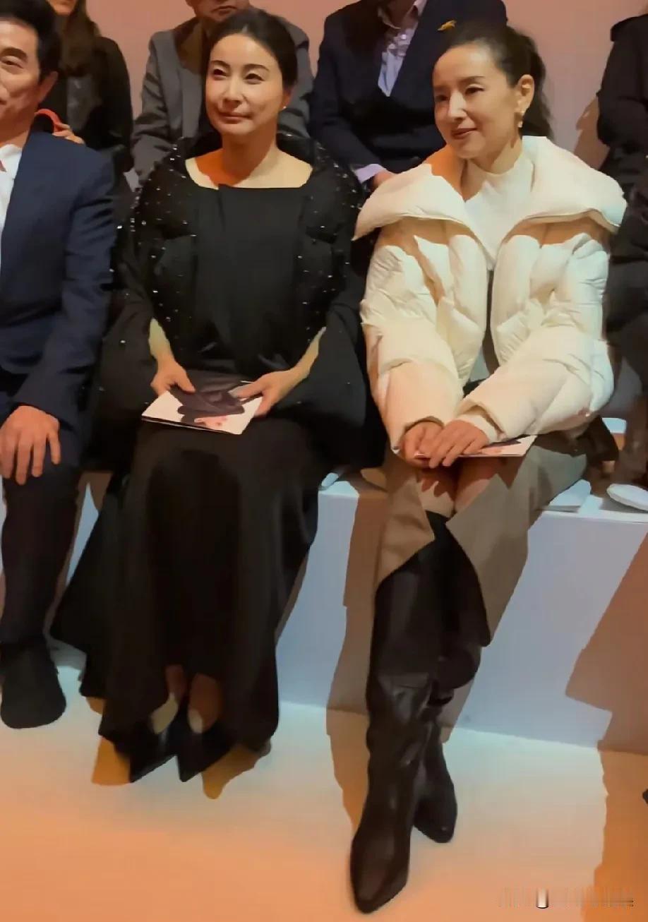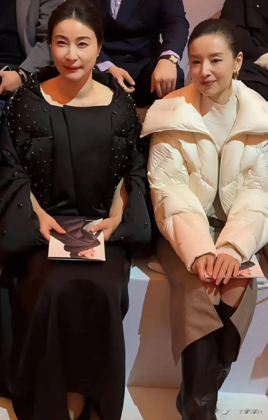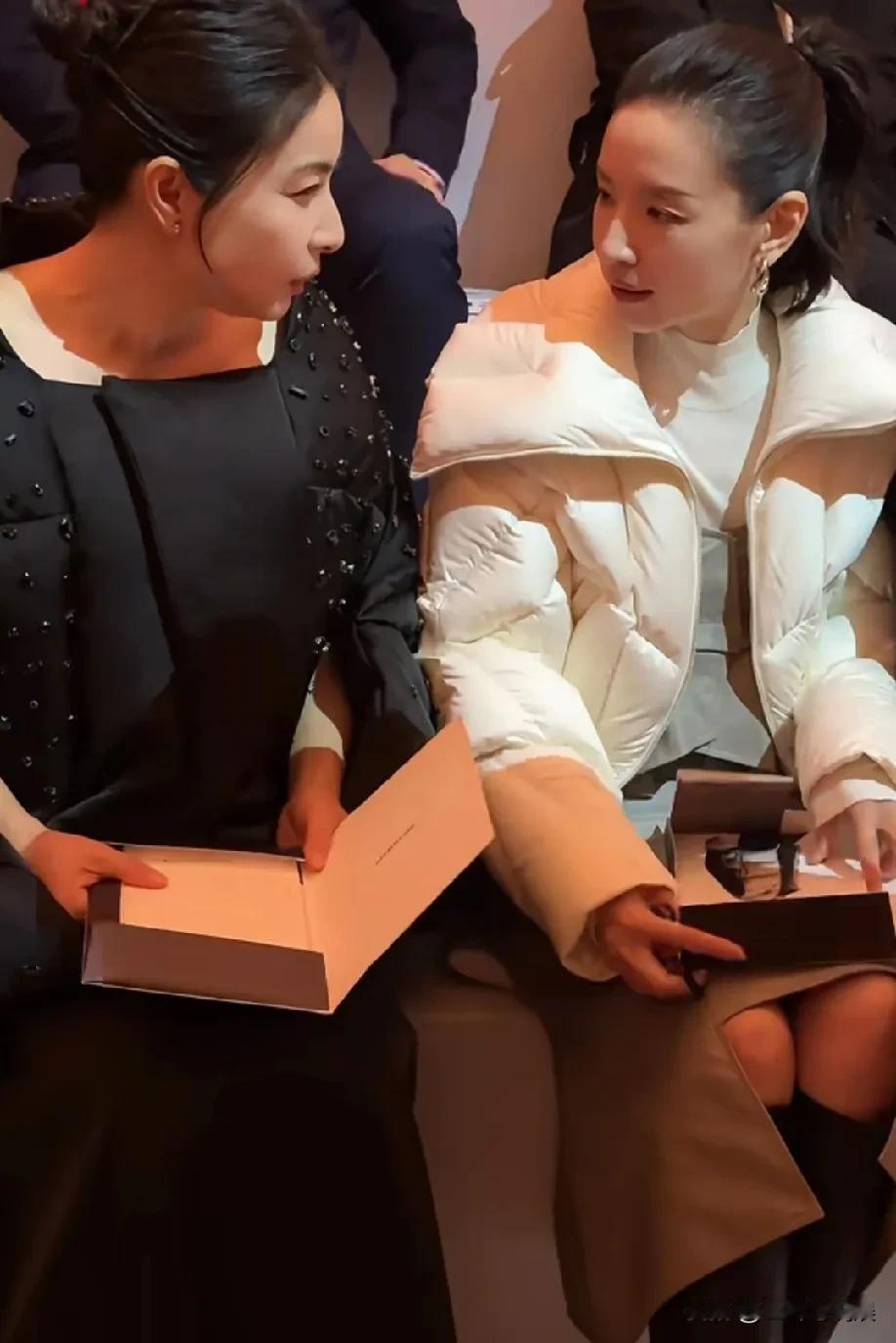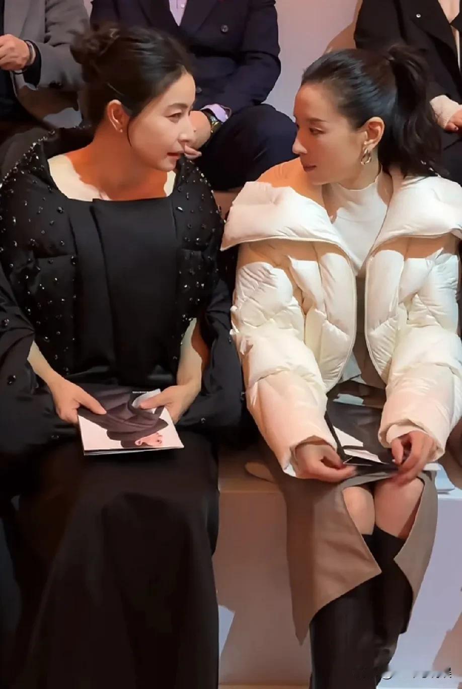 这两人同框好养眼啊!郭晶晶董洁现身巴黎时装周,两人穿着一黑一白,并肩而坐,侃侃而谈,气场看起来特别合。 郭晶晶一袭黑色缀珠外套,珠子错落有致,在灯光下似隐约闪烁,搭配同色系长裙,神态悠然,尽显端庄典雅。 董洁则身着白色短款羽绒服,内搭简约白色衣物,下身卡其色裙装与黑色长靴搭配,非常地时尚。她面带温和笑意,流露出惬意与从容。 两个人属于不同气质的美女,董洁清新淡雅,骨像绝美秀气,稍微捯饬就很漂亮。郭晶晶大气端庄,虽说单看不是很出挑,但和女明星合照从来不输。 郭晶晶