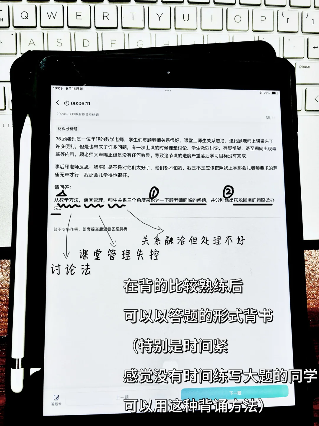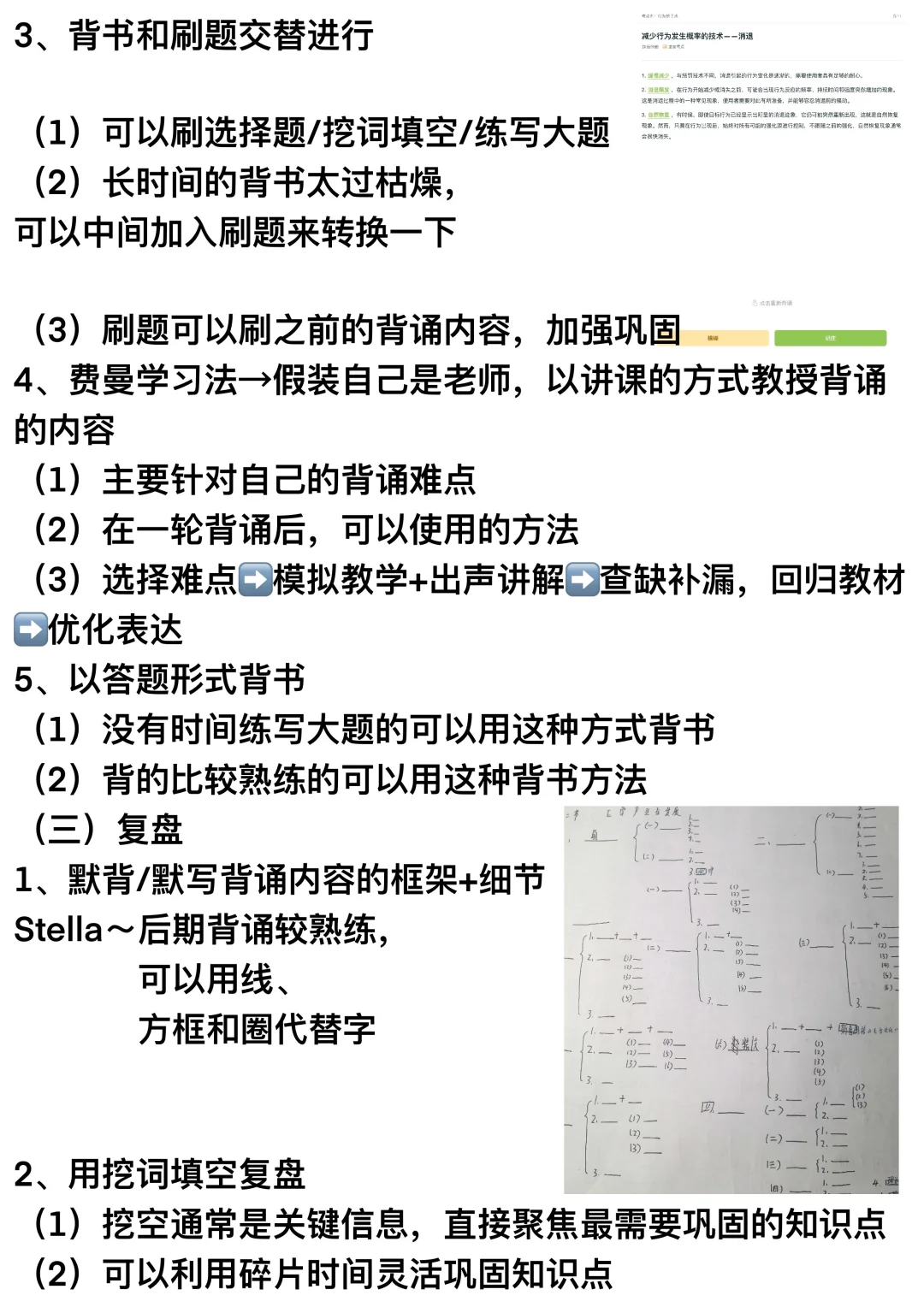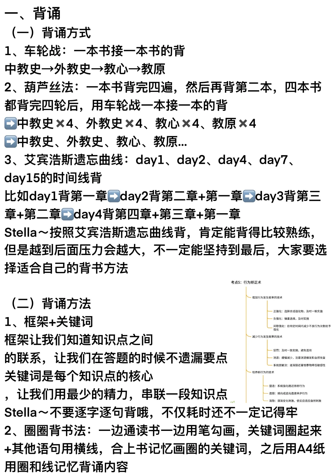 1、背诵笔记:每天背2h以上的书→结束三轮背诵(中教[5天]、外教[5天]、教心[7天]、教原[7天])