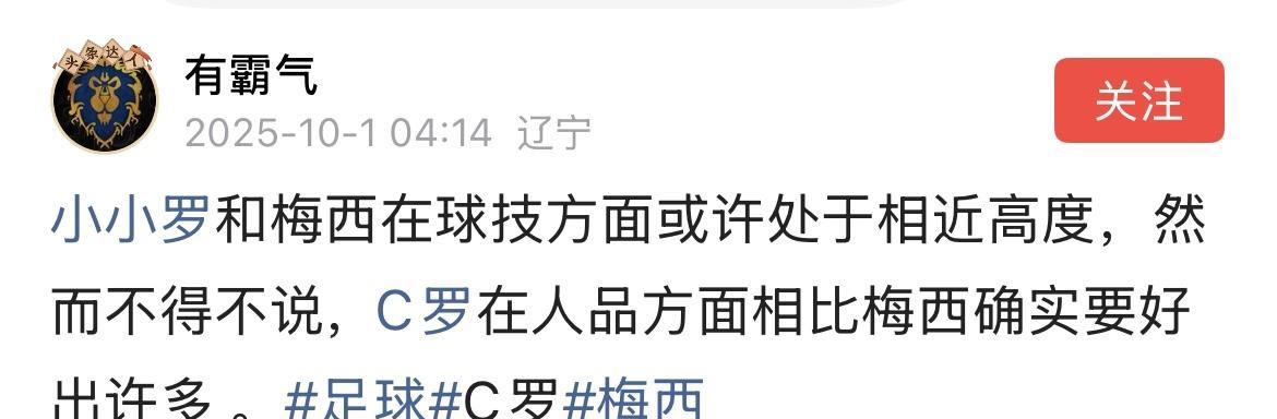 大罗谈和C罗的差异:我训练是因为这是义务,有时候我甚至都不训练,而C罗是为热爱而 【32评论】【3点赞】 C罗 罗纳尔多·路易斯·纳扎里奥·达·利马 国际当红足球明星 意甲 翊逸梦随风 2025-10-06