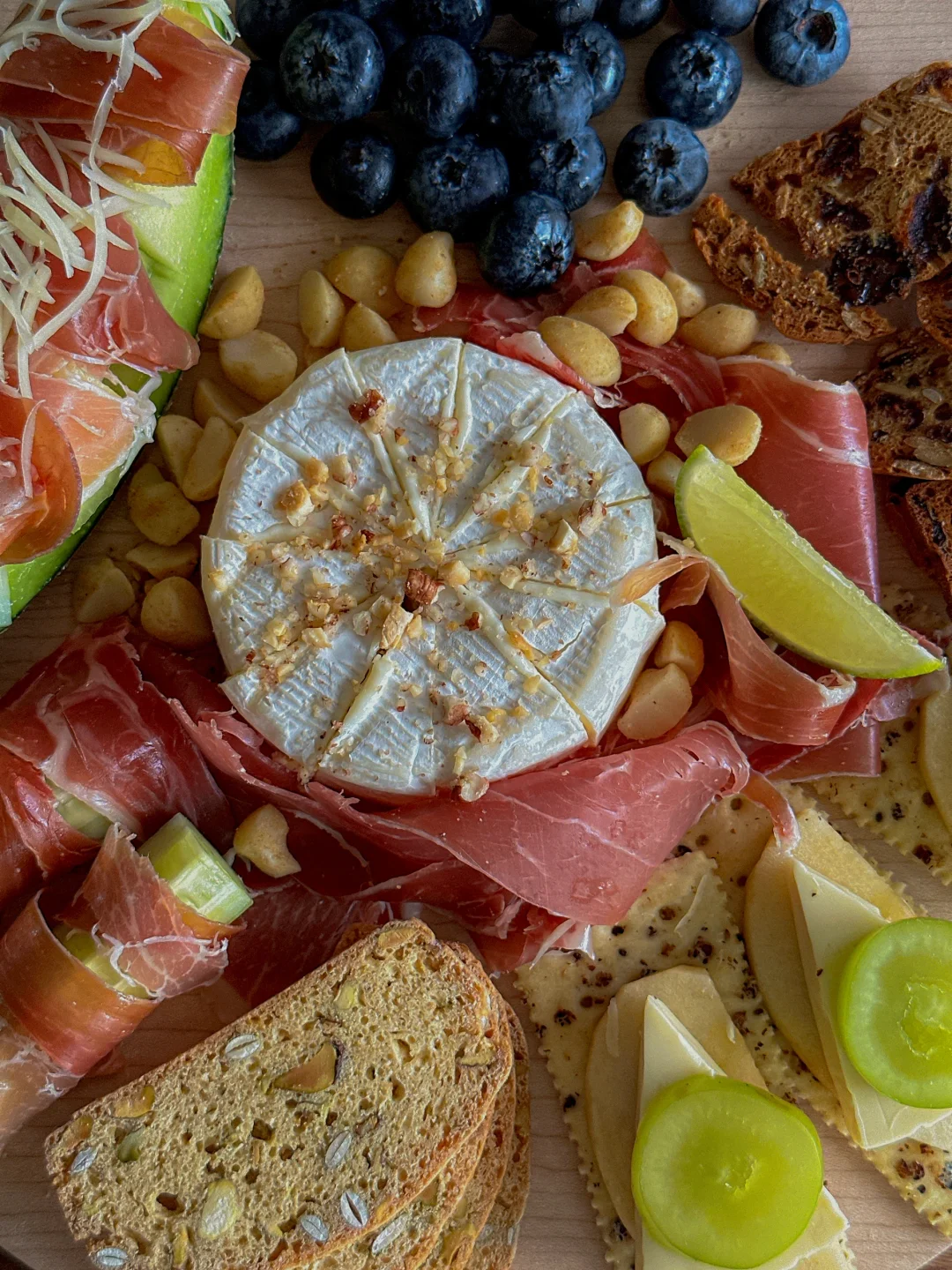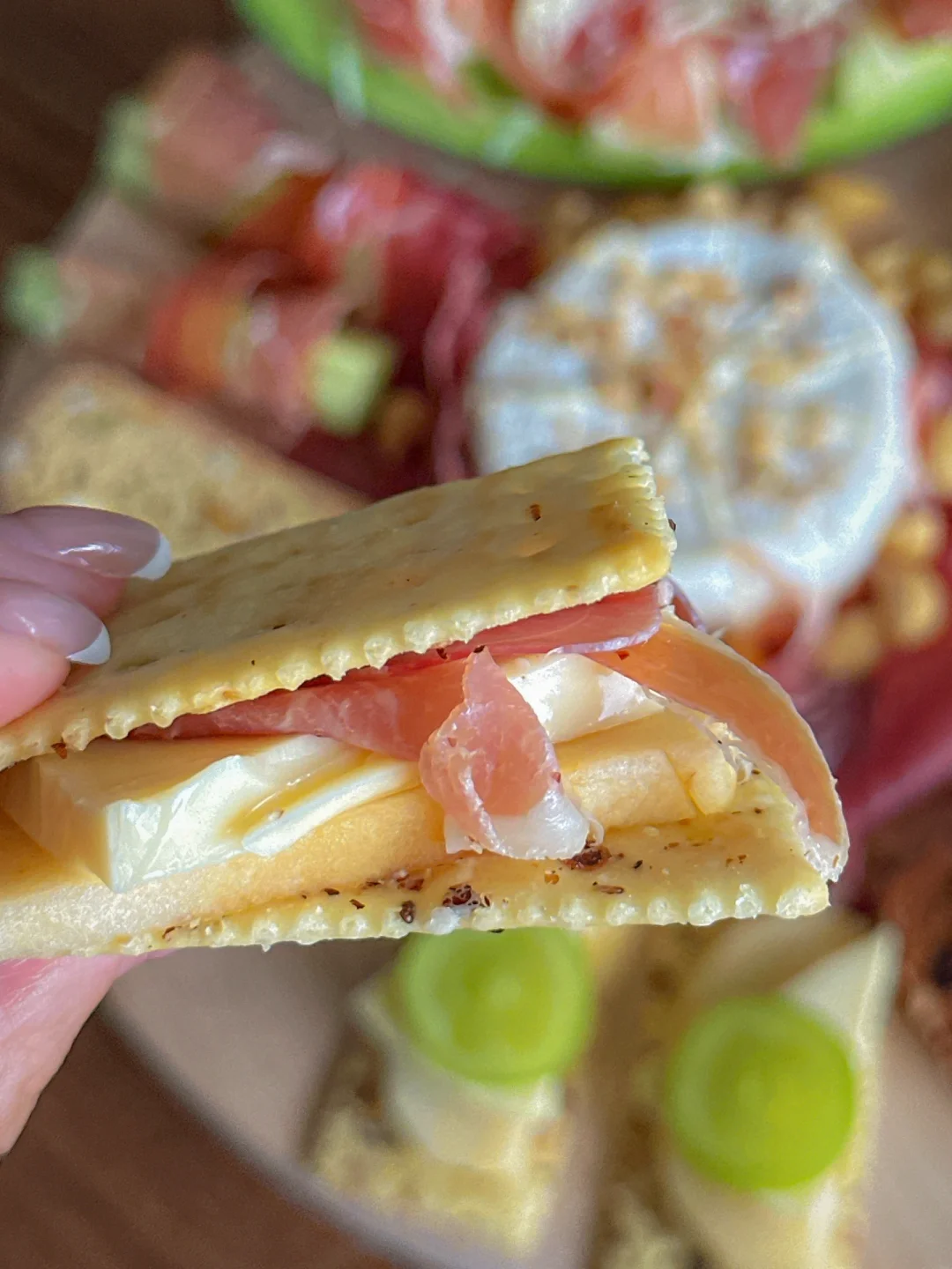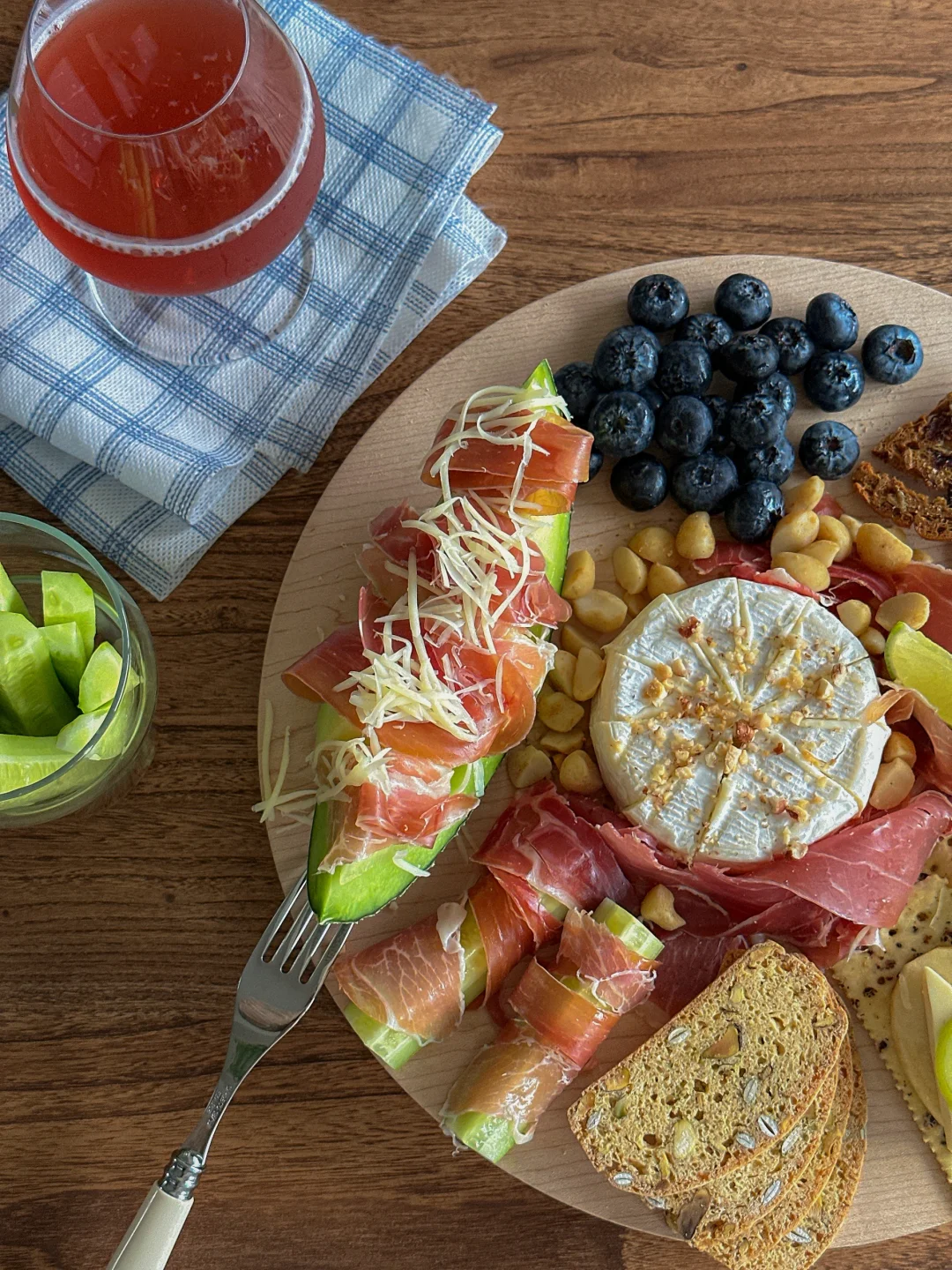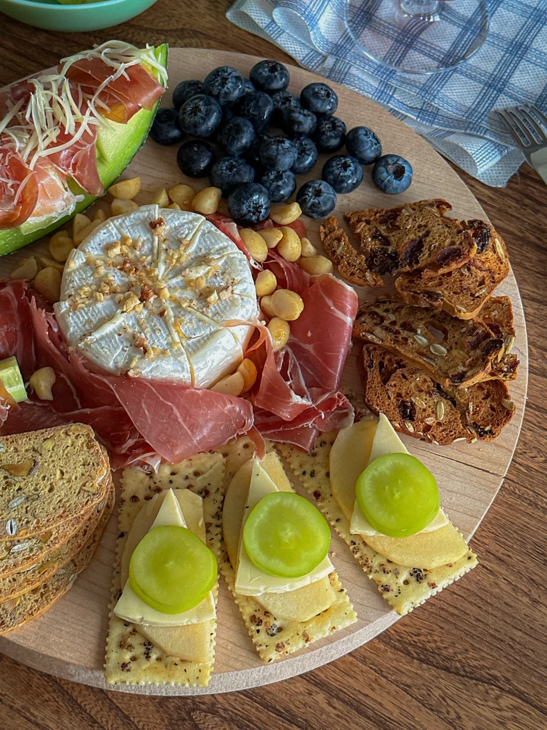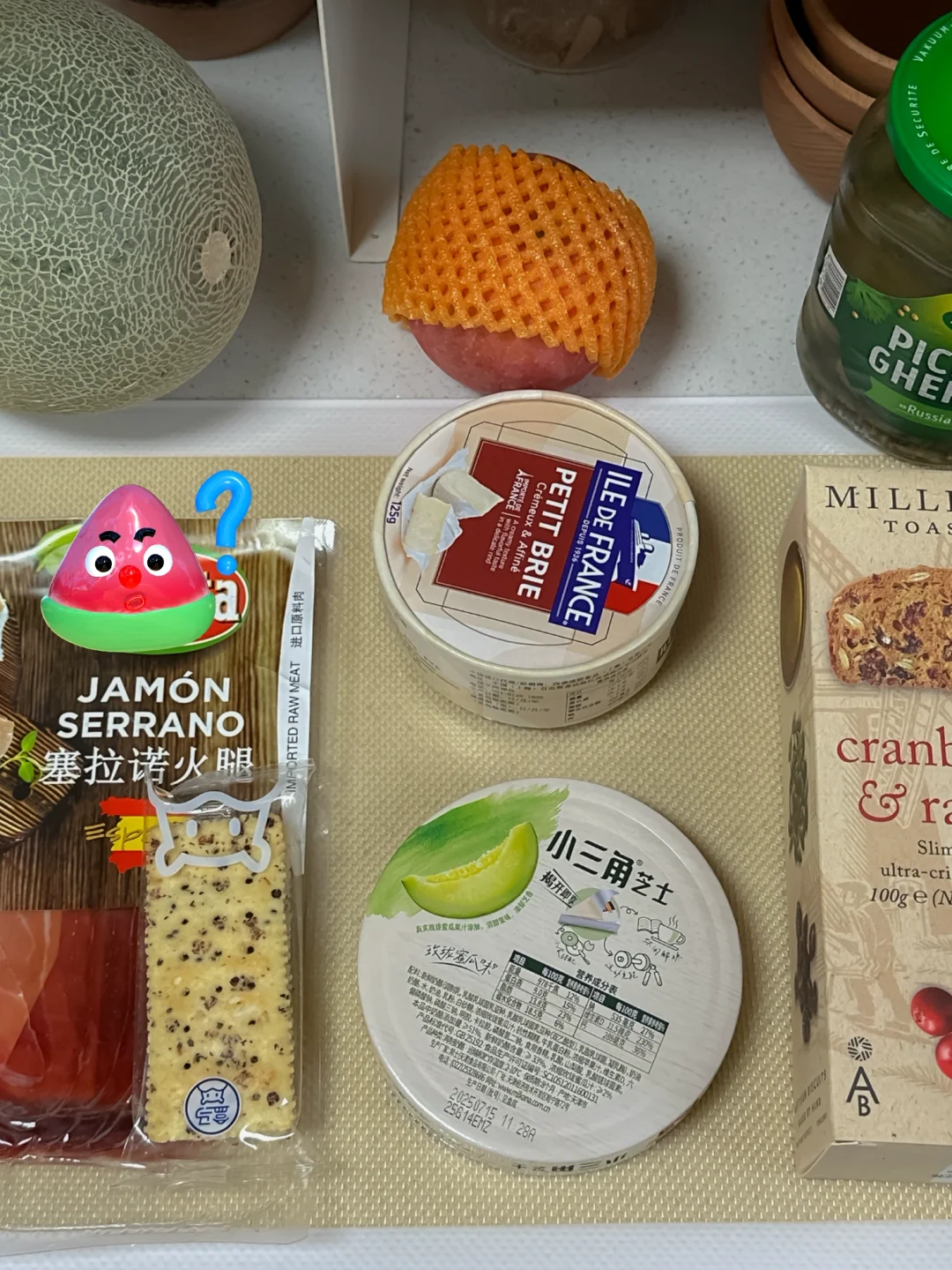 一个人宅家小酌 奶酪 火腿 低糖饼干 夏威夷果仁 蓝莓 蜜瓜🍈 奶酪的浓郁+水果的清甜+火腿的咸香 🧀不管空口吃还是搭配水果 饼干 都棒极了;味蕾大满足! 搭配一杯鲜甜气泡🫧康普茶 好适合一人或👭来下酒佐餐 口味丰富又不会撑肚子,追剧一定要试试的! 挑选喜欢的食材 随意摆盘 好吃又好玩~ 小饼干基本都是低糖低卡的,热量不高吃的开心! end假期愉快呀😋