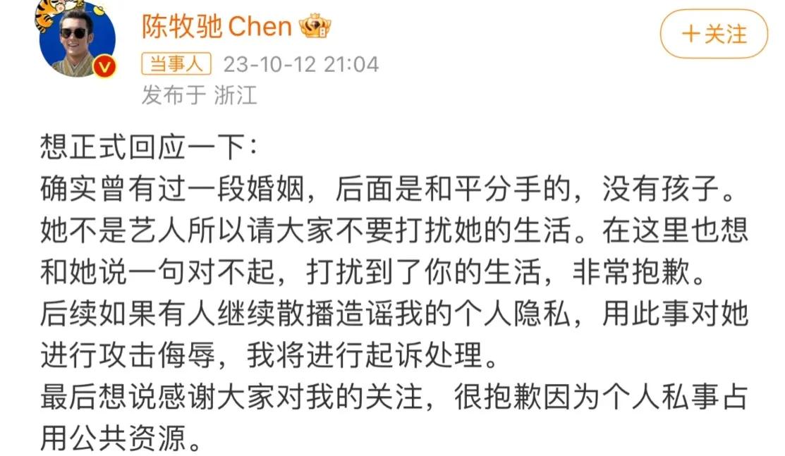 原来他俩还在一起啊! 10月9日,有八卦媒体拍到陈牧驰、陈冰外出聚餐,两人都身穿T恤打扮日常,边吃边聊天。全程气氛很融洽,状态松弛得像过了十年的老夫妻,饭后两人共同乘车离开。 陈牧驰跟陈冰的恋爱时间线: 2022年11月,狗仔爆料两人一起去咖啡厅 2023年10月9号,狗仔爆料两人的恋情 2023年10月13号,两人一起乘坐飞机去海南 2023年11月,狗仔爆料两人是同居状态 2024年10月,狗仔爆料两人已经领证结婚 陈冰的母亲还曾点.赞过关于陈牧驰的相关博文,这无疑为这段情缘增添了几分可信度。然而,面对传闻陈牧驰与陈冰本人至今都未给出正式答复。 此前陈牧驰承认自己确实有过一段婚姻,后面和平分手了,两人没有孩子。陈牧驰前妻是《封神》剧组的人,所以闪婚闪离是因为有了新欢陈冰?