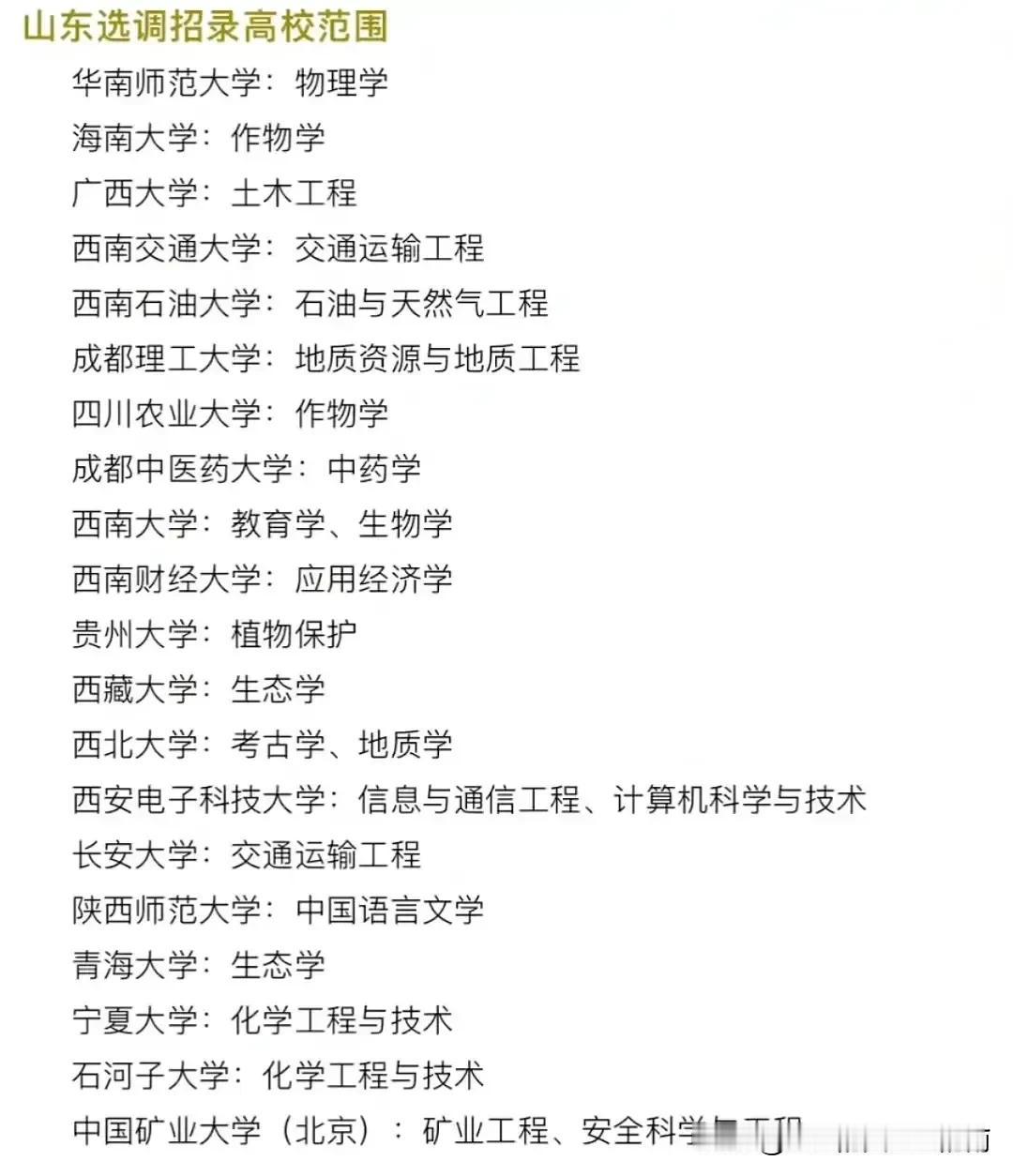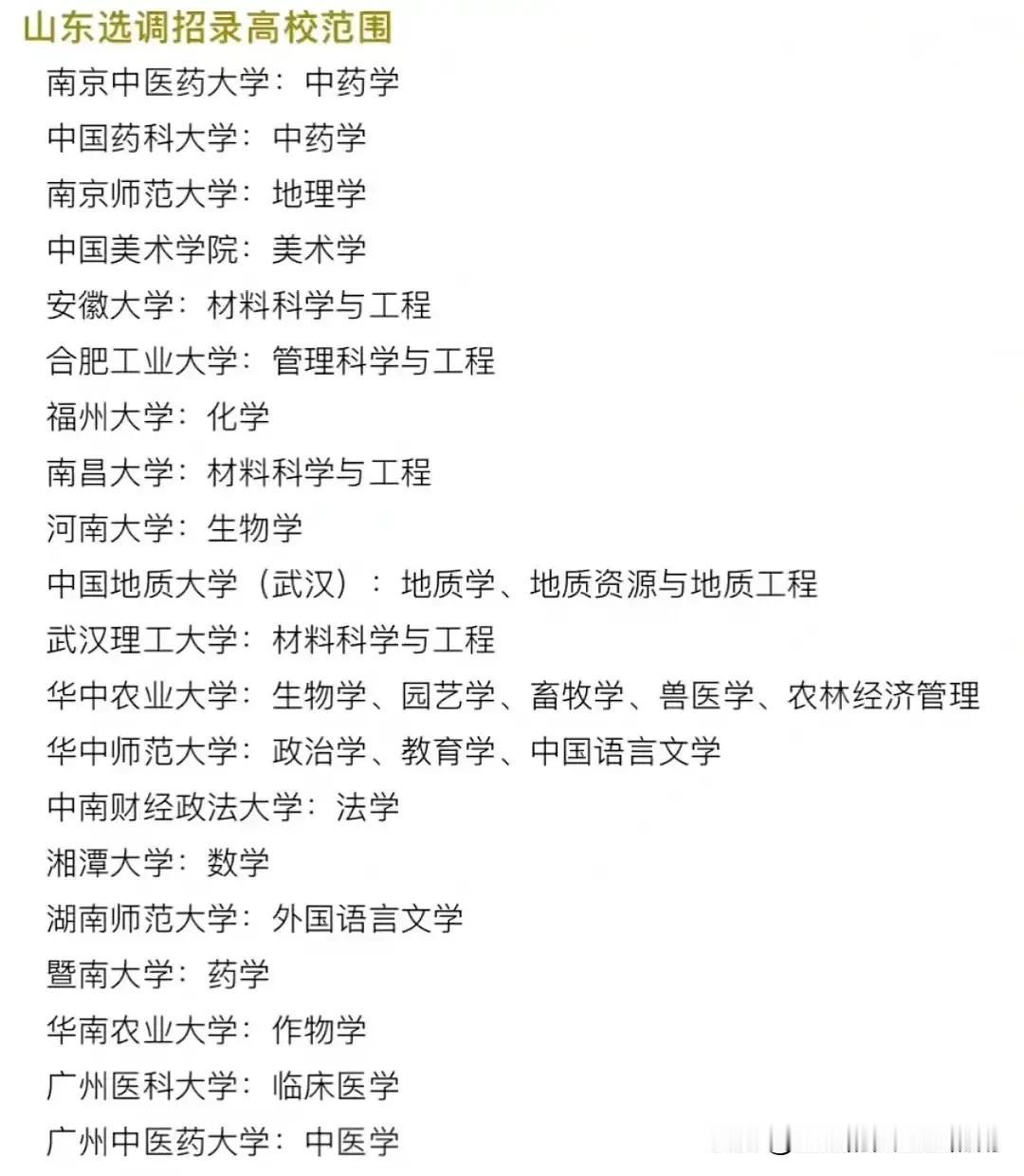 山东招贤纳士,1600个“潜力股”岗位等你来! 2026年,山东放出大招,准备一口气选拔近1600名优秀年轻人进入干部队伍。这次选拔分两批进行,思路清晰,目标明确。 第一批,瞄准“顶尖学霸” 专门面向北京大学、清华大学、南开大学、天津大学在内的19所国内顶尖高校。说白了,这就是一场“精英选拔”,为山东直接引进高起点人才。 第二批,路子更宽,机会更多 这一批采用“两条腿走路”: 1. 定向部分高校和专业:继续精准锁定一些目标院校和相关专业的优秀毕业生。 2. 面向全国普通高校:只要你足够优秀,无论来自哪个大学,都有机会报名。这是给所有踏实努力、心怀梦想的毕业生一个公平竞争的机会。 总而言之 这次大规模选调,核心目的就是广撒网、精捕鱼,为山东的未来发展储备一支年轻化、高素质的生力军。如果你有志于在体制内大展拳脚,建设齐鲁大地,这无疑是一个值得重点关注的好机会。 选调高校范围: