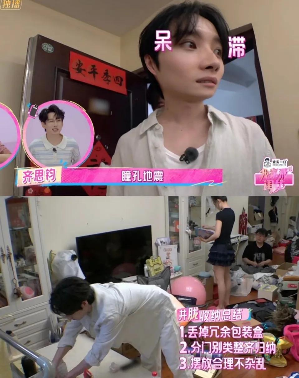 井胧不会得帮全内娱的人收拾吧?内娱家政第一人! 谁懂!李莎旻子对着满屋子的杂物无奈笑说“东西太多没地方放,我都着急”,还直言在比较乱的情况下和管乐的家一模一样。看照片我还以为是管乐的第二个家了,连凌乱的细节都像复制粘贴,这届年轻人果然还是不一样,好真实啊! 井胧拿出塑料袋往地上一铺,就开始断舍离。原本满满当当的衣柜,经他手一整理,居然腾出不少空间,每样东西都能快速找到,忍不住想他以后会不会转行啊? 感觉这成了井胧的副.业了,老是刷到他帮人整理家里的片段。上次是管乐,这次又到了李莎旻子家,就那种乱无秩序的东西经过他的手都变整洁了,应该很有成就感吧! 好喜欢看井胧干活,井井有条的,这水平都可以专.职做收.纳了。要不给他单独开个节目,就拍整理明星家的这种,井胧在各个家里帮忙收拾哈哈哈~