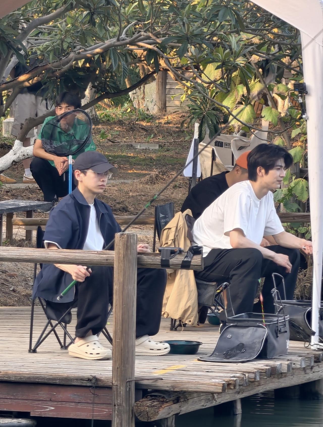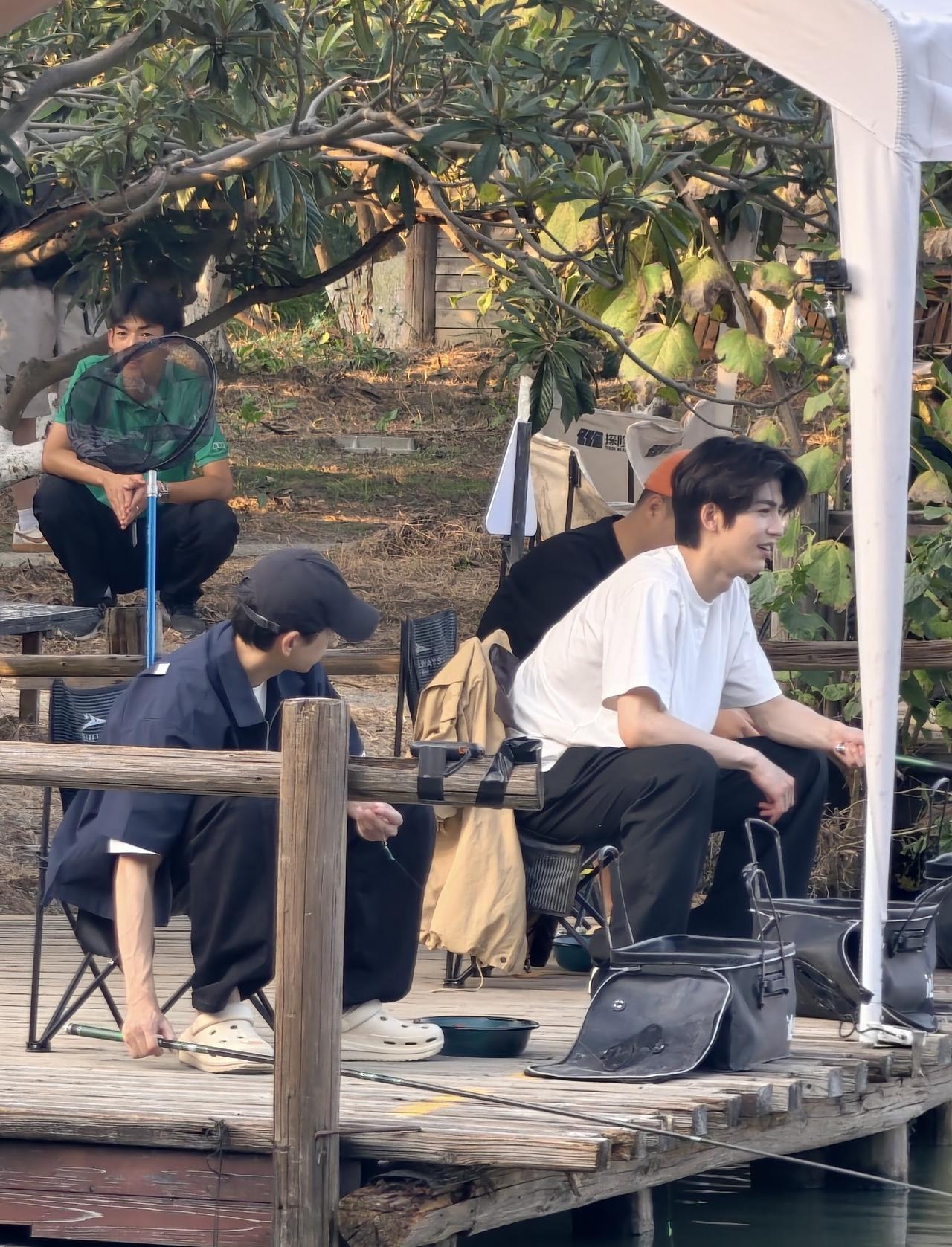 10月8日,有位网友在乌镇偶遇彭昱畅,他与张凌赫、马頔坐在那里钓鱼的画面。 彭