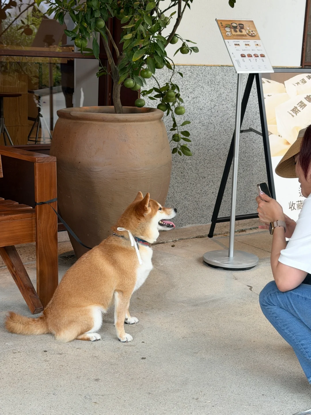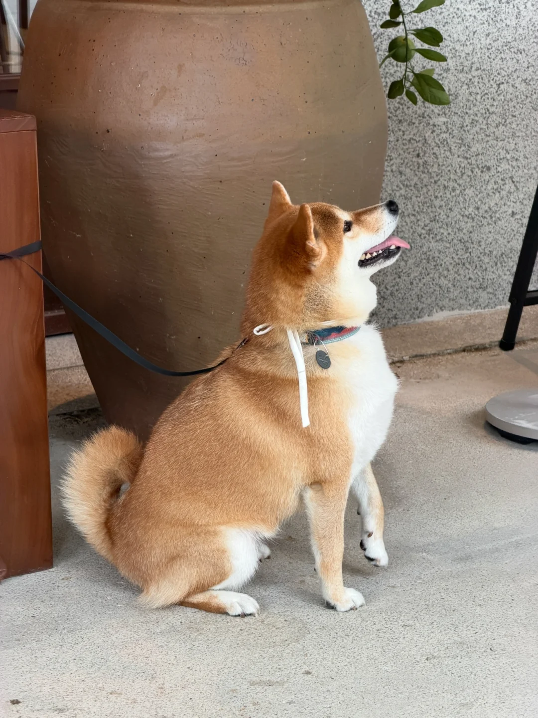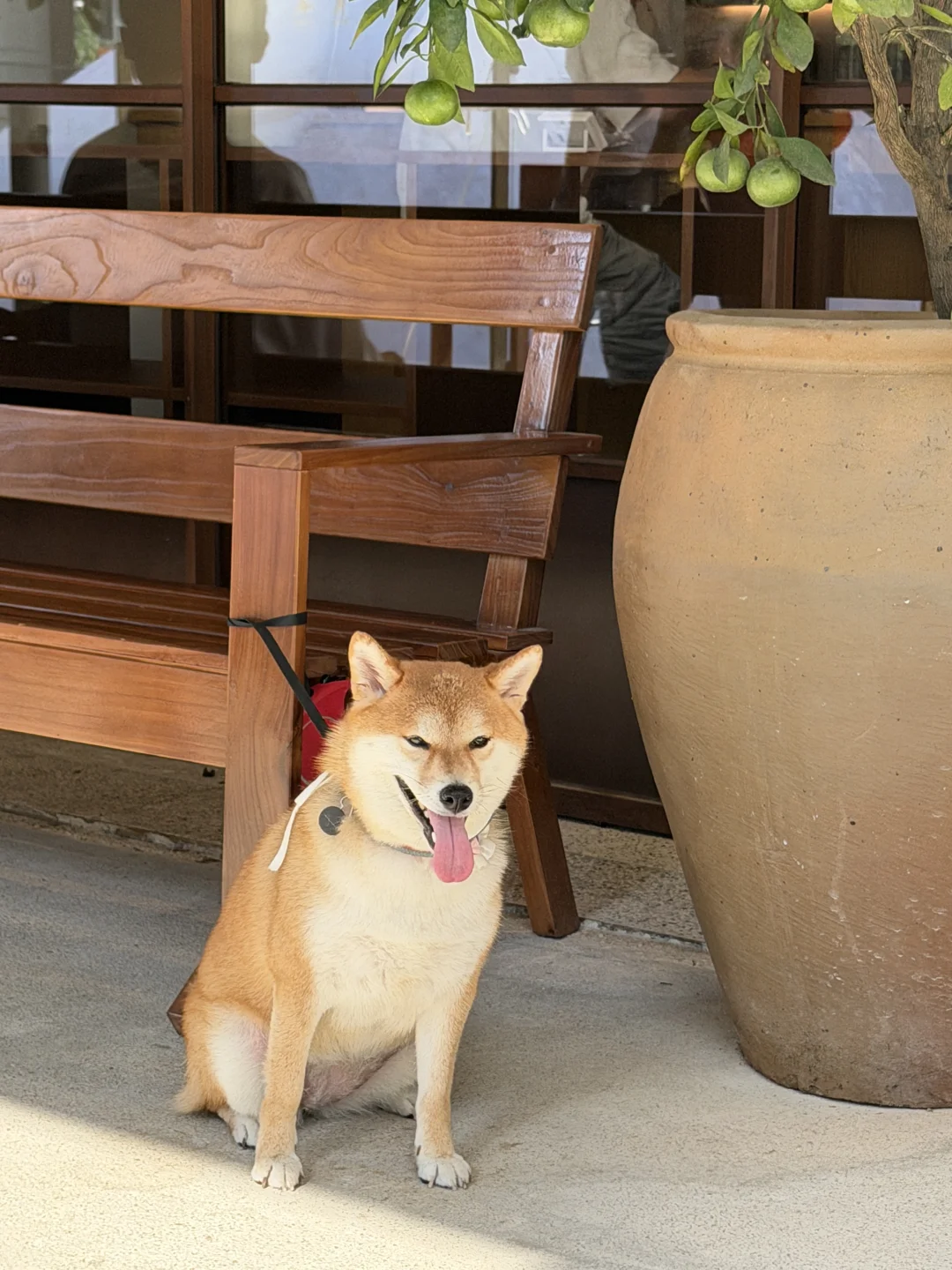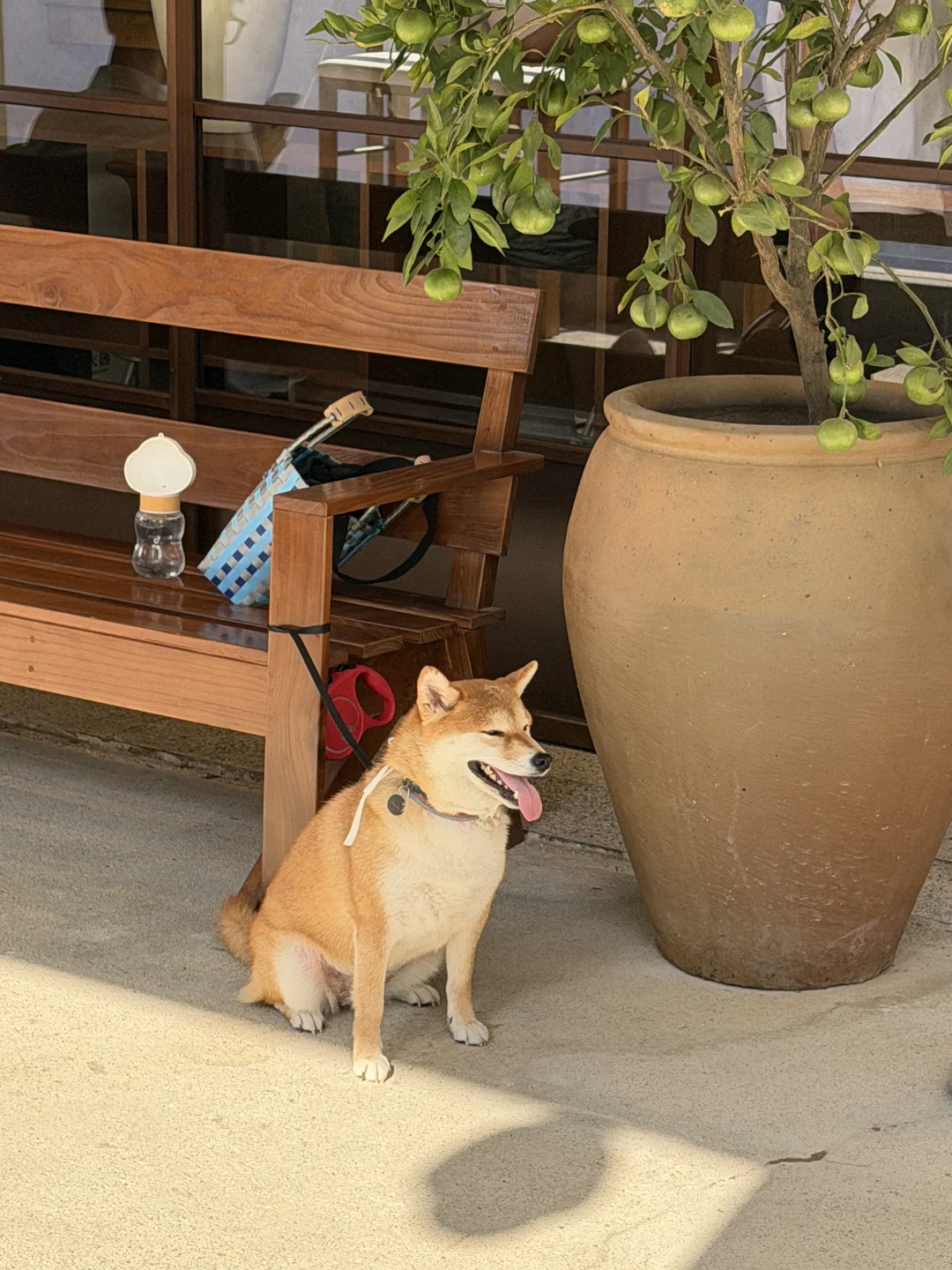 宠物不友好 所以只能把她临时拴在店门口