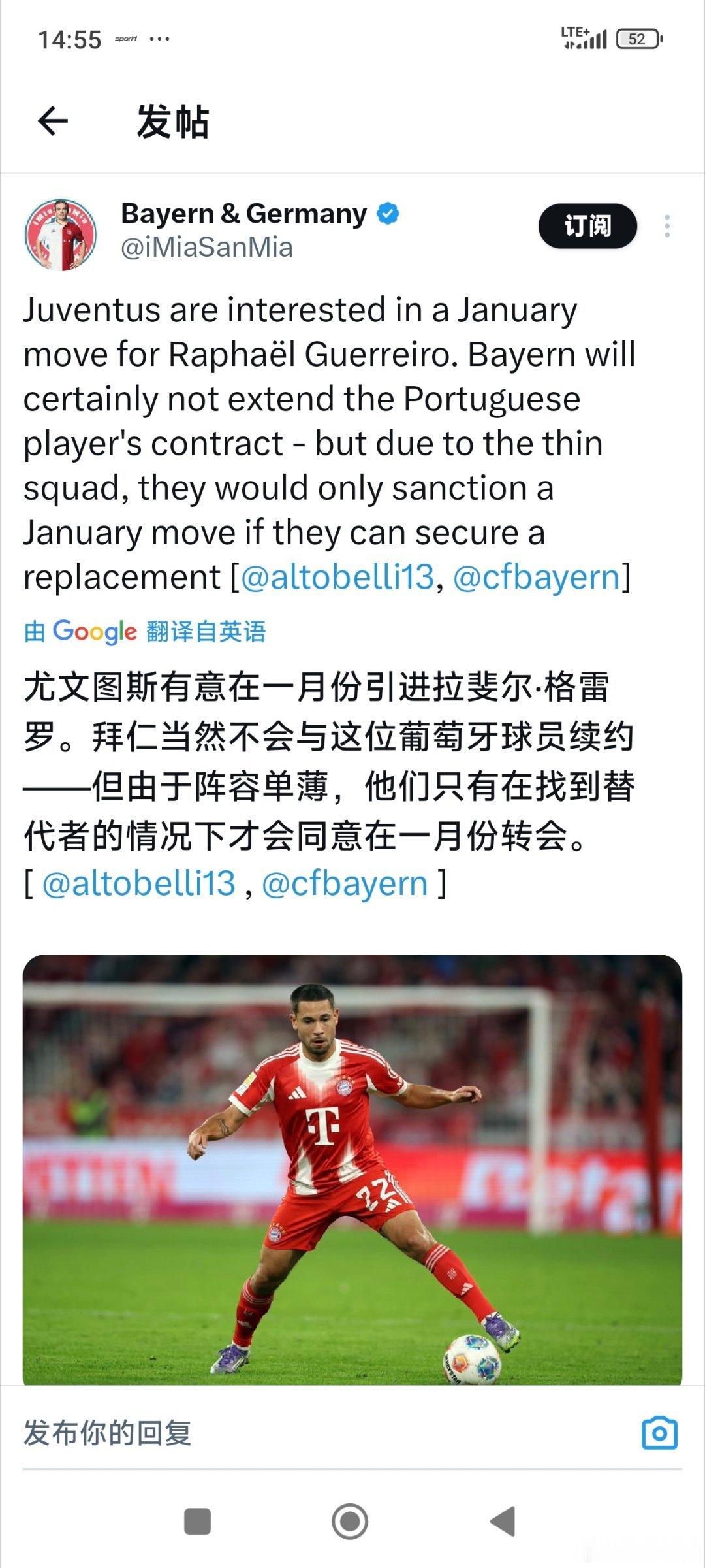 尤文有兴趣在一月签下格雷罗,不过由于拜仁阵容单薄,除非引进球员否则不会因为这点小钱放人。