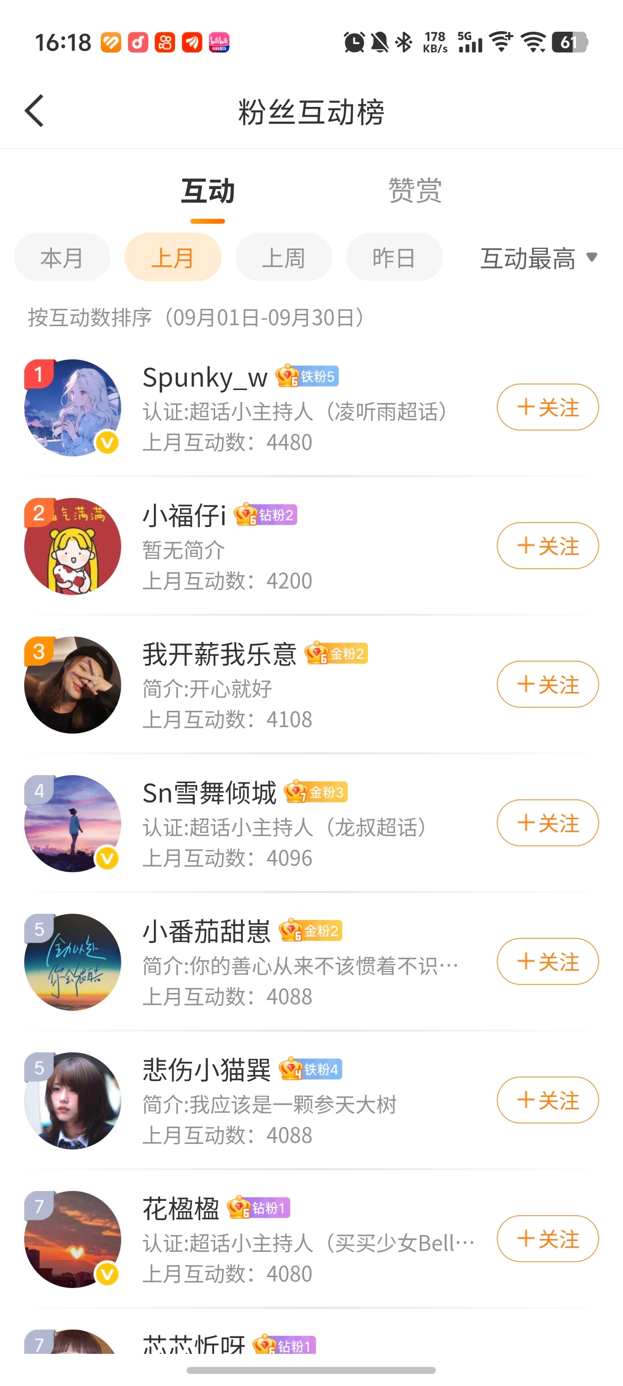 上月互动榜,大家申请入群哦[哈哈]