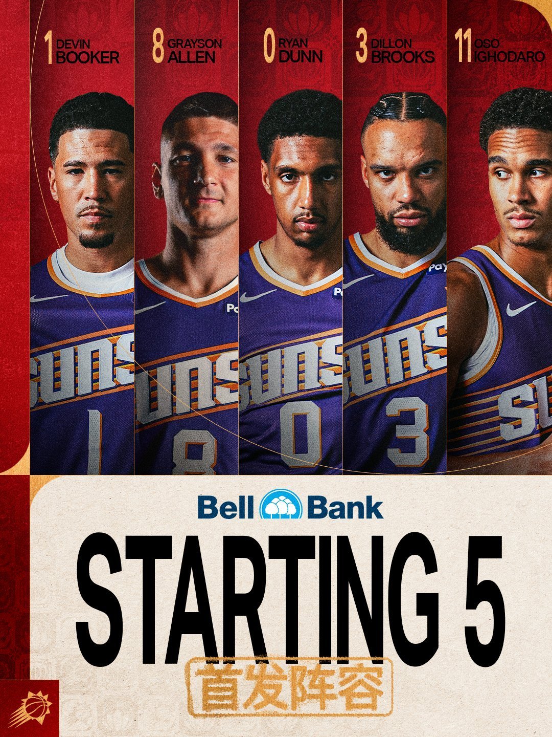 今日首发:布克➕阿伦➕邓恩➕狄龙➕伊戈达罗NBA中国赛2025