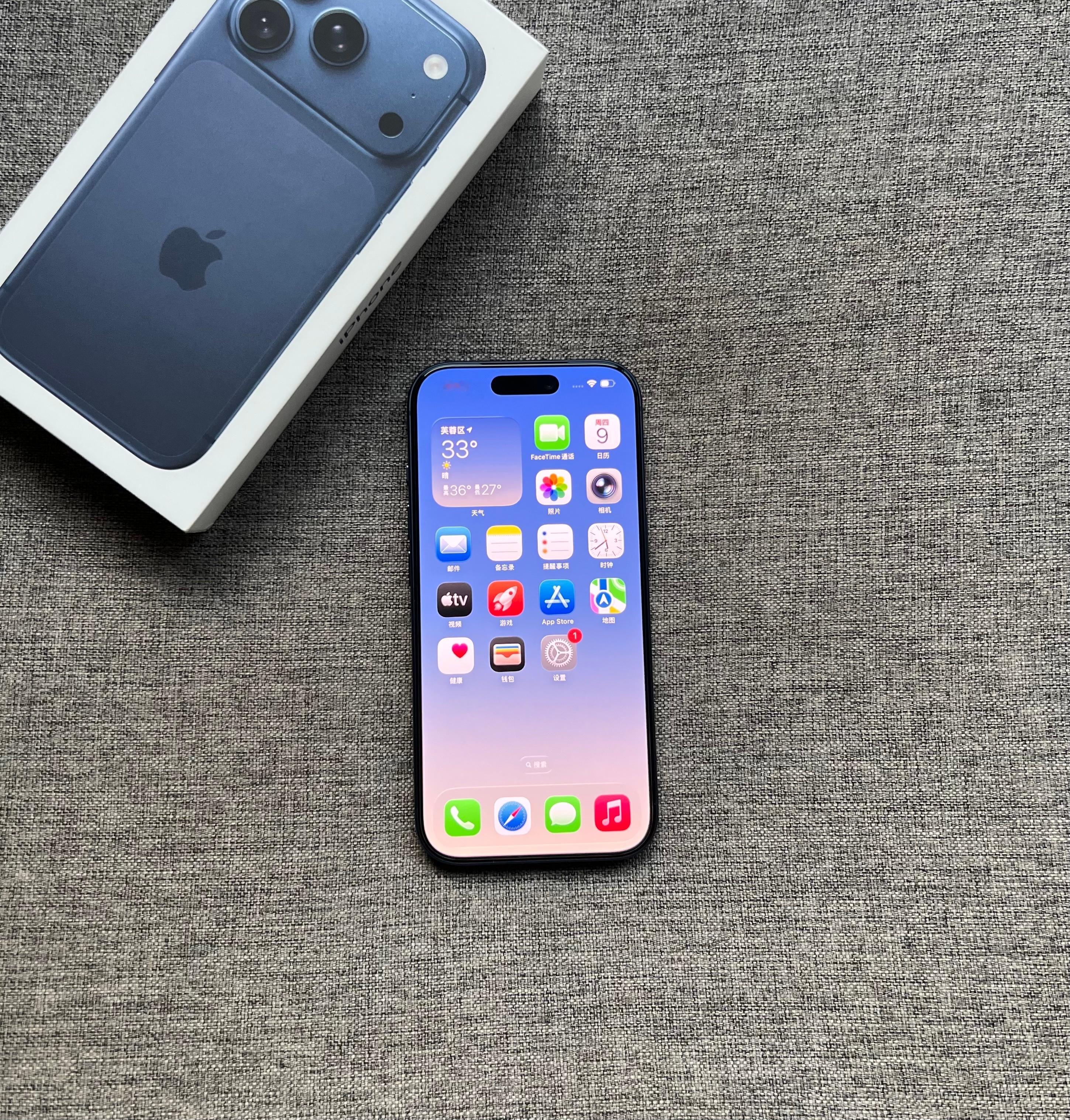 iPhone17 Pro 256G 蓝色,99新全套,电池循环14次,效率100,全国联保至2026-09-25,8399