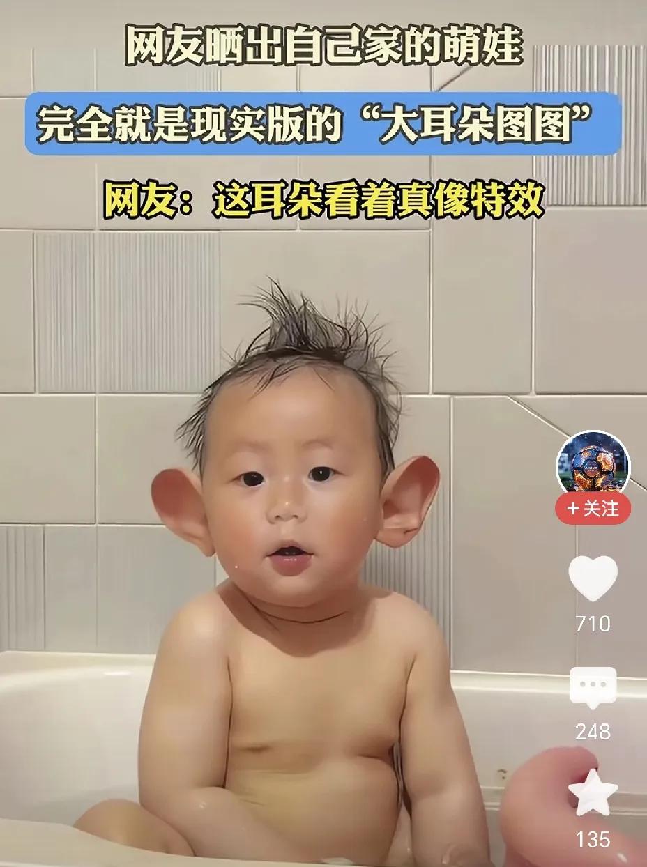 这孩子也太可爱了吧,哈哈,真正的大耳朵。 这种耳朵属于招财耳吧? 我都怀疑,这种孩子会不会有特异功能,传说中的“顺风耳”,可听千里之外的声音。 大家对此怎么看?