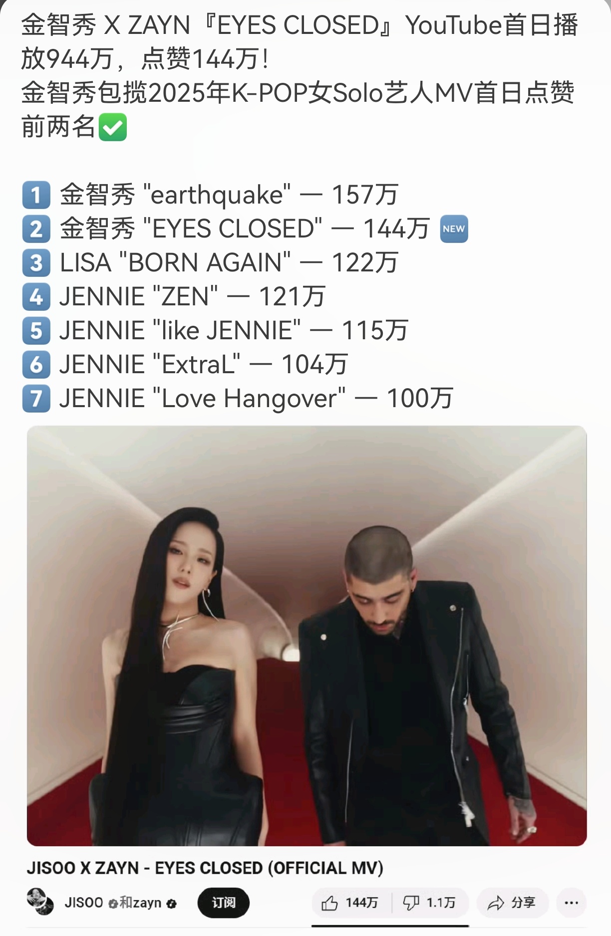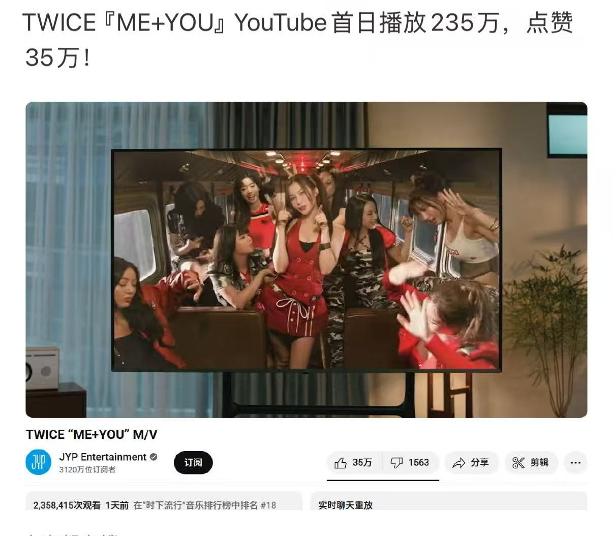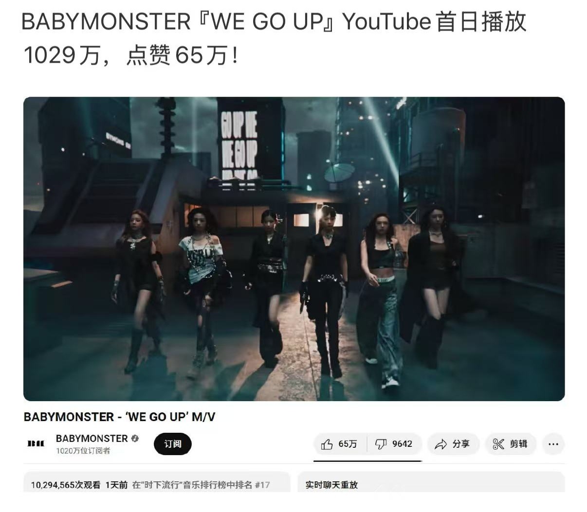 昨天发歌的TWICEbabymonster金智秀首日油管成绩已出