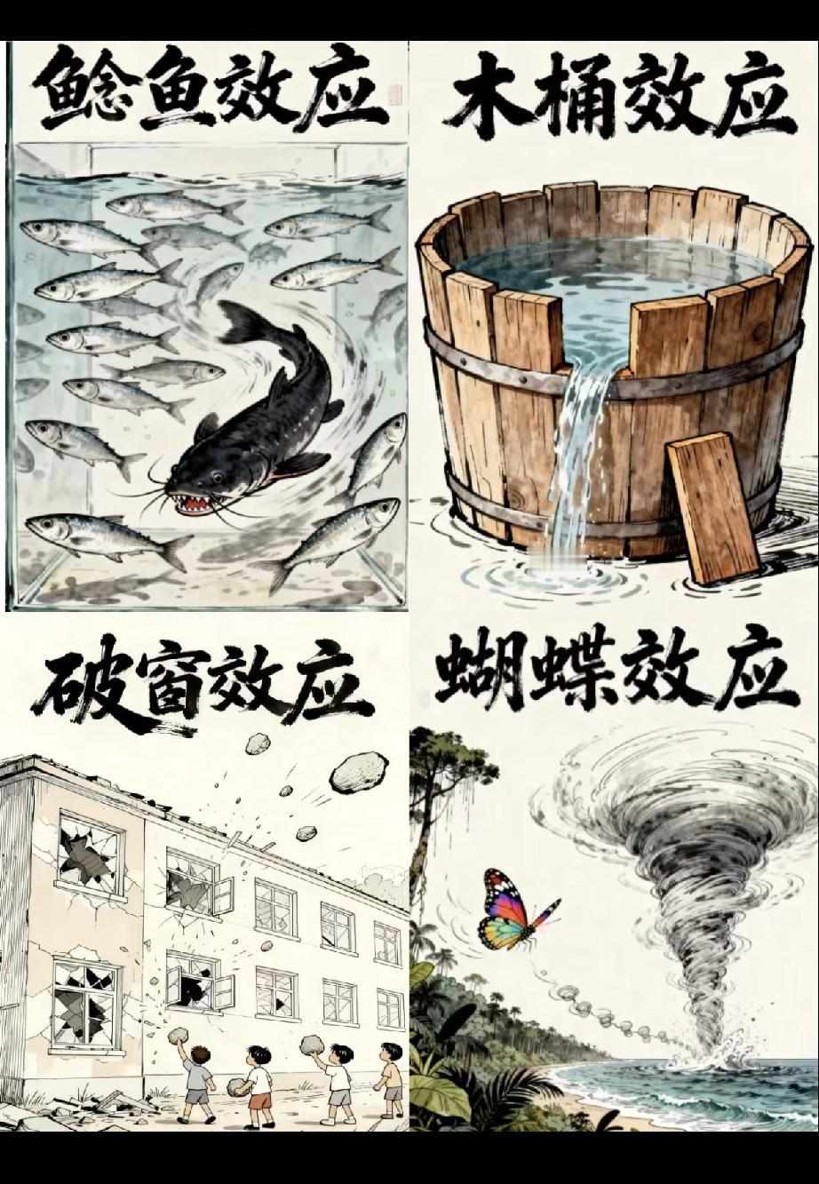 鲶鱼效应vs木桶效应vs破窗效应vs蝴蝶效应