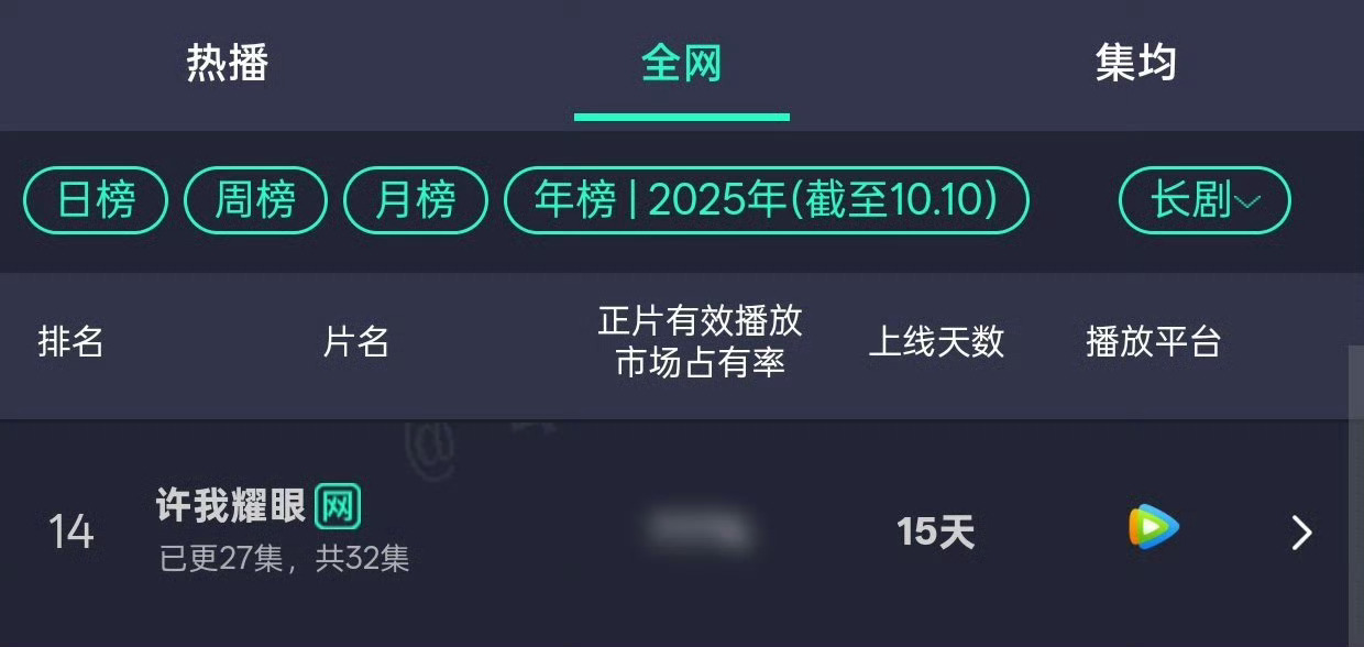 许我耀眼今天大结局进入云合年榜14,集均已经破4000万了