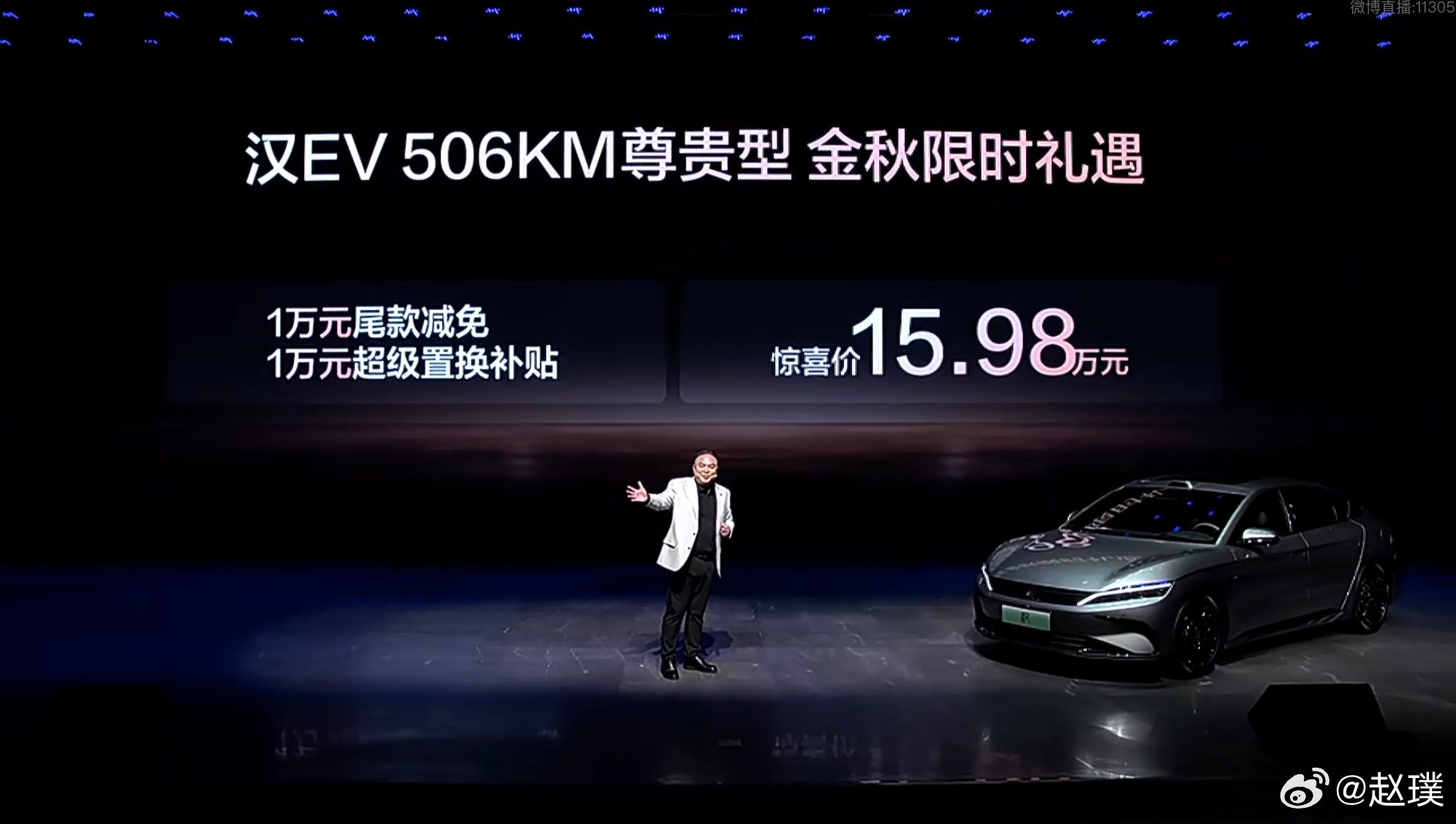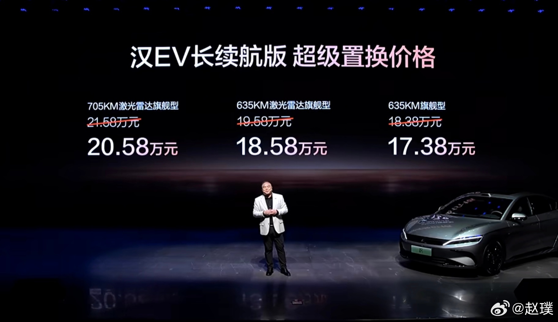依然是EV和DM两种动力形式,性能不变,续航有所增加,EV版增加了635公里车型,DM版增加纯电续航245公里车型。比亚迪汉长续航版15.98万起上市