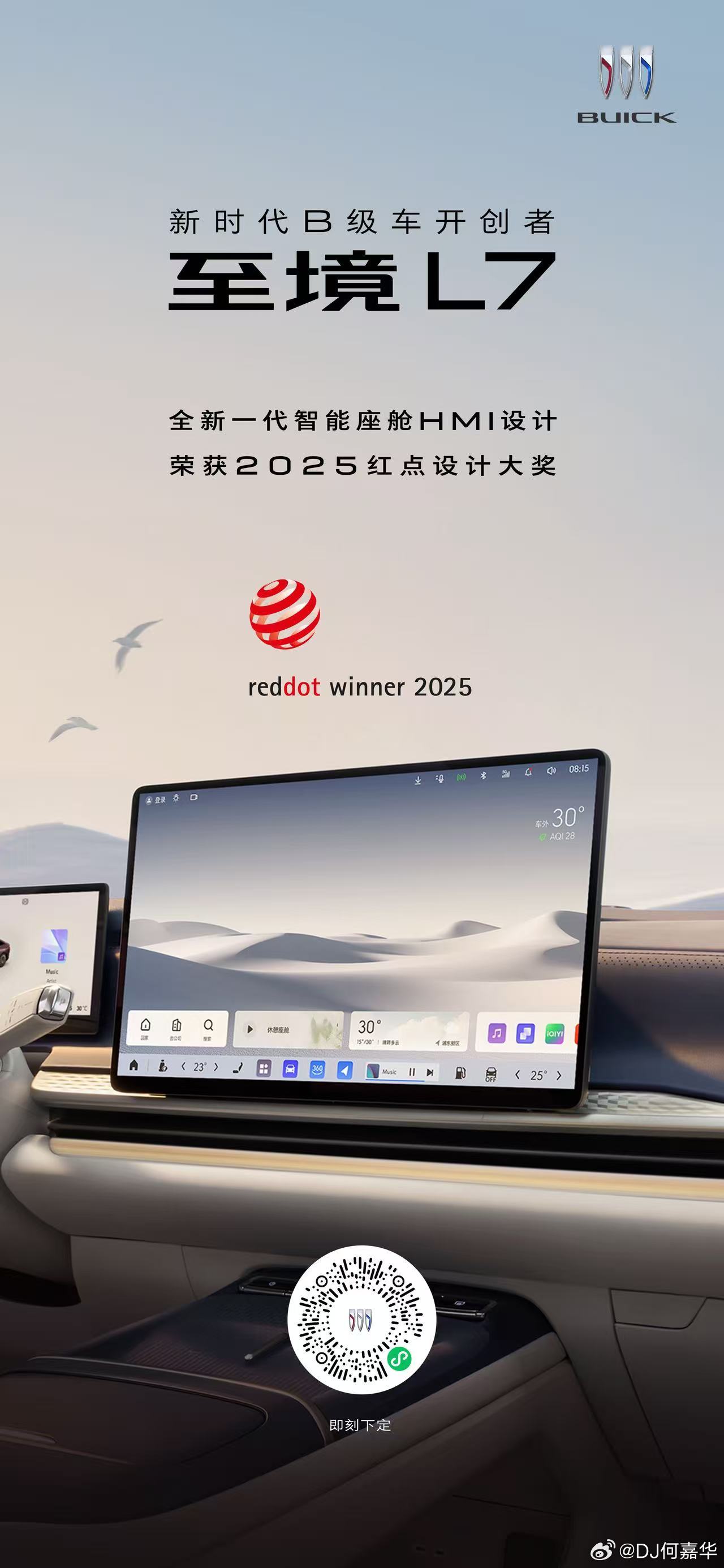 近日,新时代B级车开创者——至境L7再度迎来高光时刻:其智能座舱人机界面(Human Machine Interface/HMI)设计在2025年德国红点设计大奖评选中斩获“品牌与传达设计”大奖,彰显了这一国际权威奖项对别克在智能座舱领域创新融合设计美学与智能体验的高度认可。